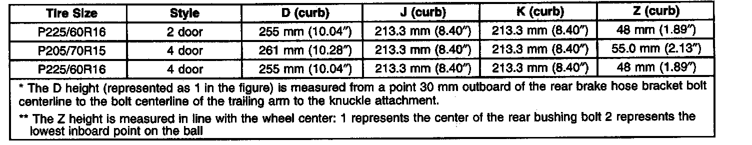 Ride/Trim Height Specifications