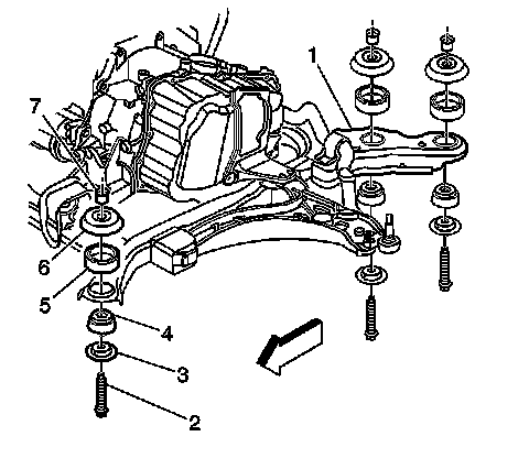 1. Assemble the engine frame insulators to the engine frame. Refer to Lower Control Arm Replacement .