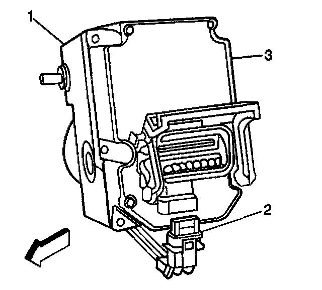 4. Connect the BPMV electrical connector (2) to the EBCM (3).