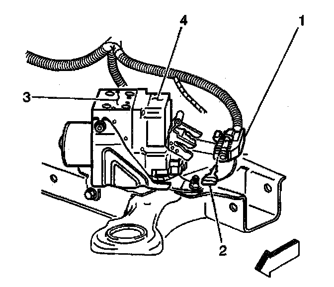 7. Disconnect the EBCM electrical connector (1) from the EBCM (4).