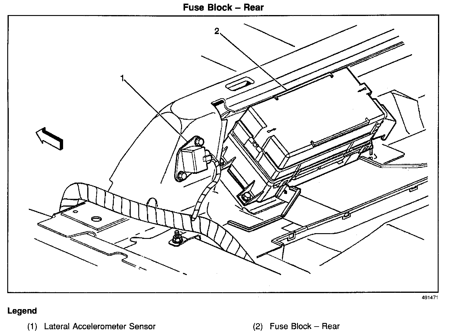 In the passenger compartment, under the rear seat, near the rear fuse block