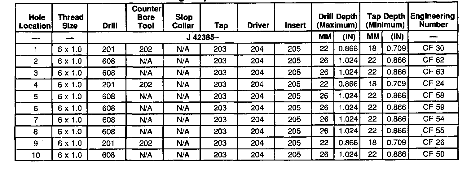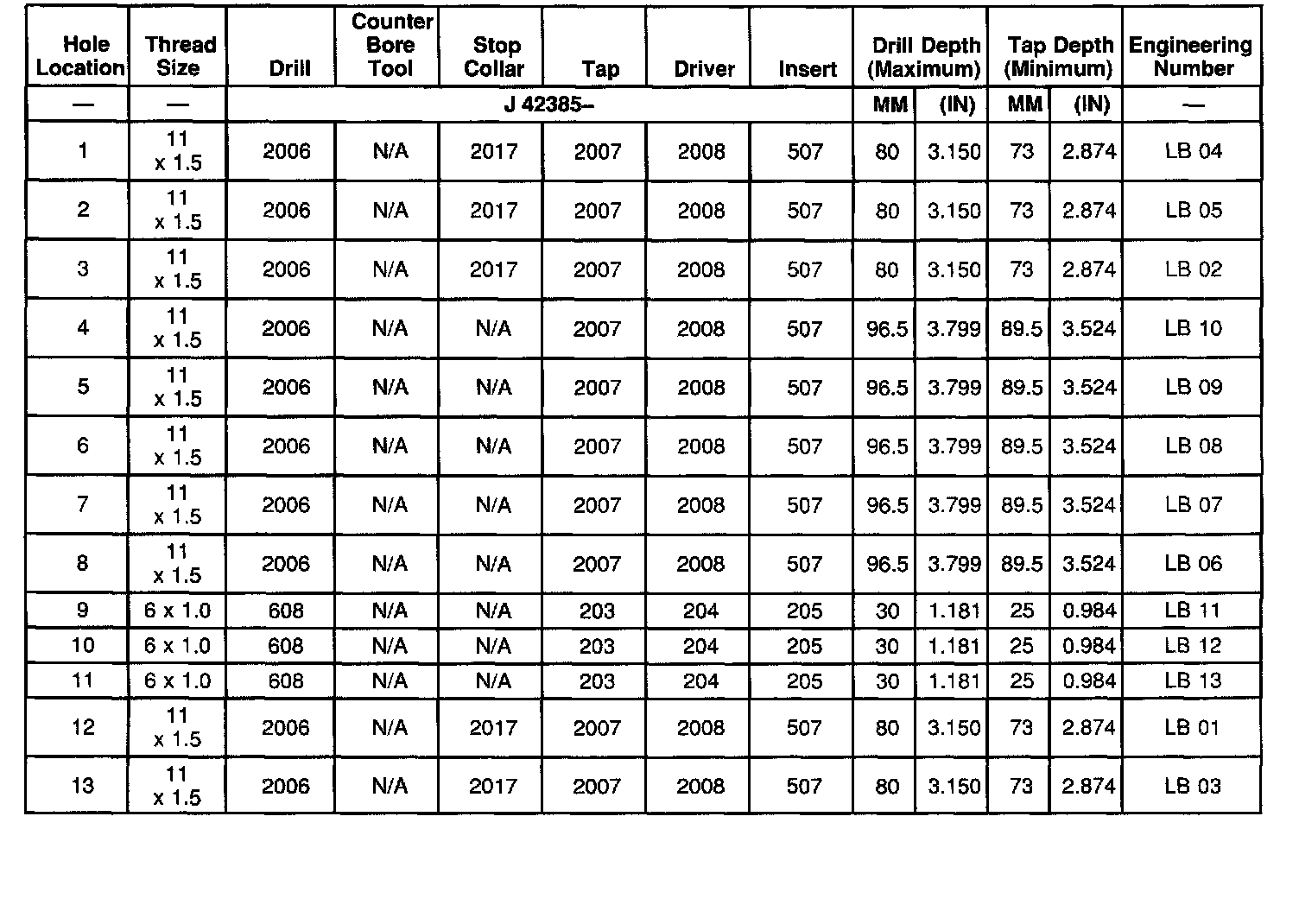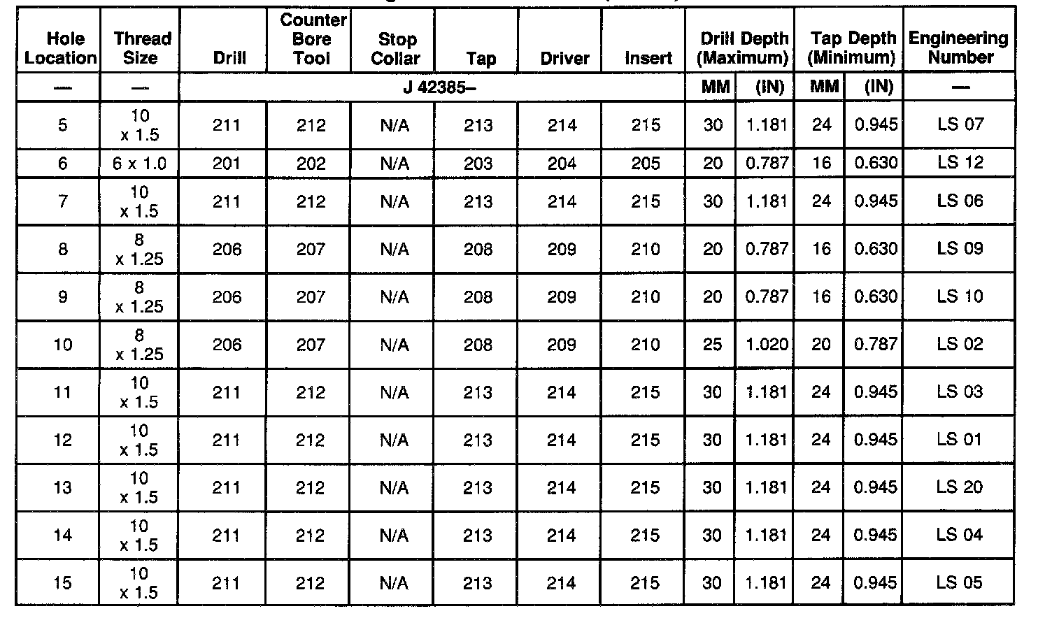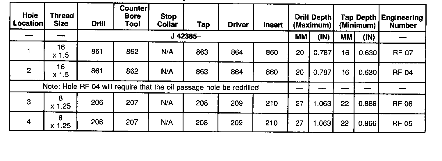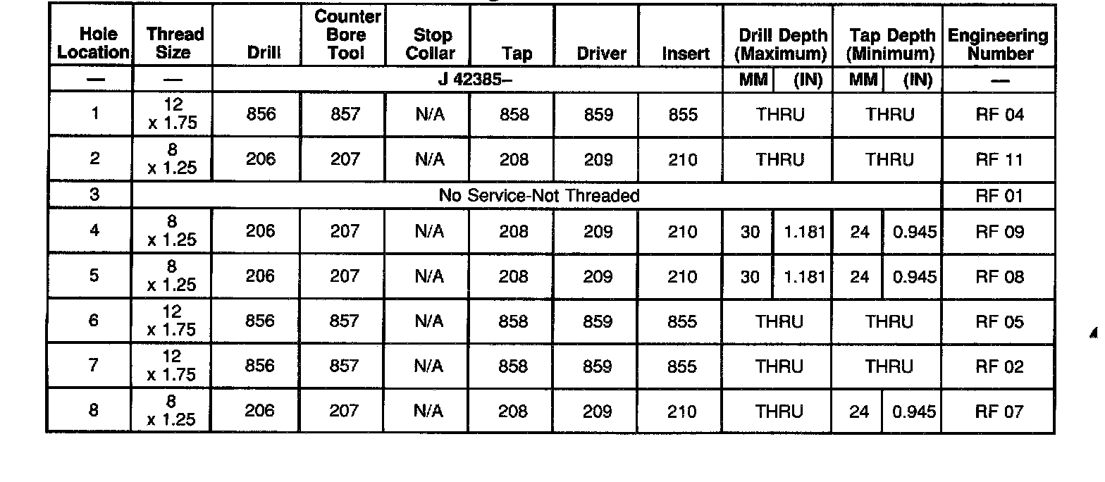 Thread Repair SpecificationsLeft Cylinder Head Cam CVR