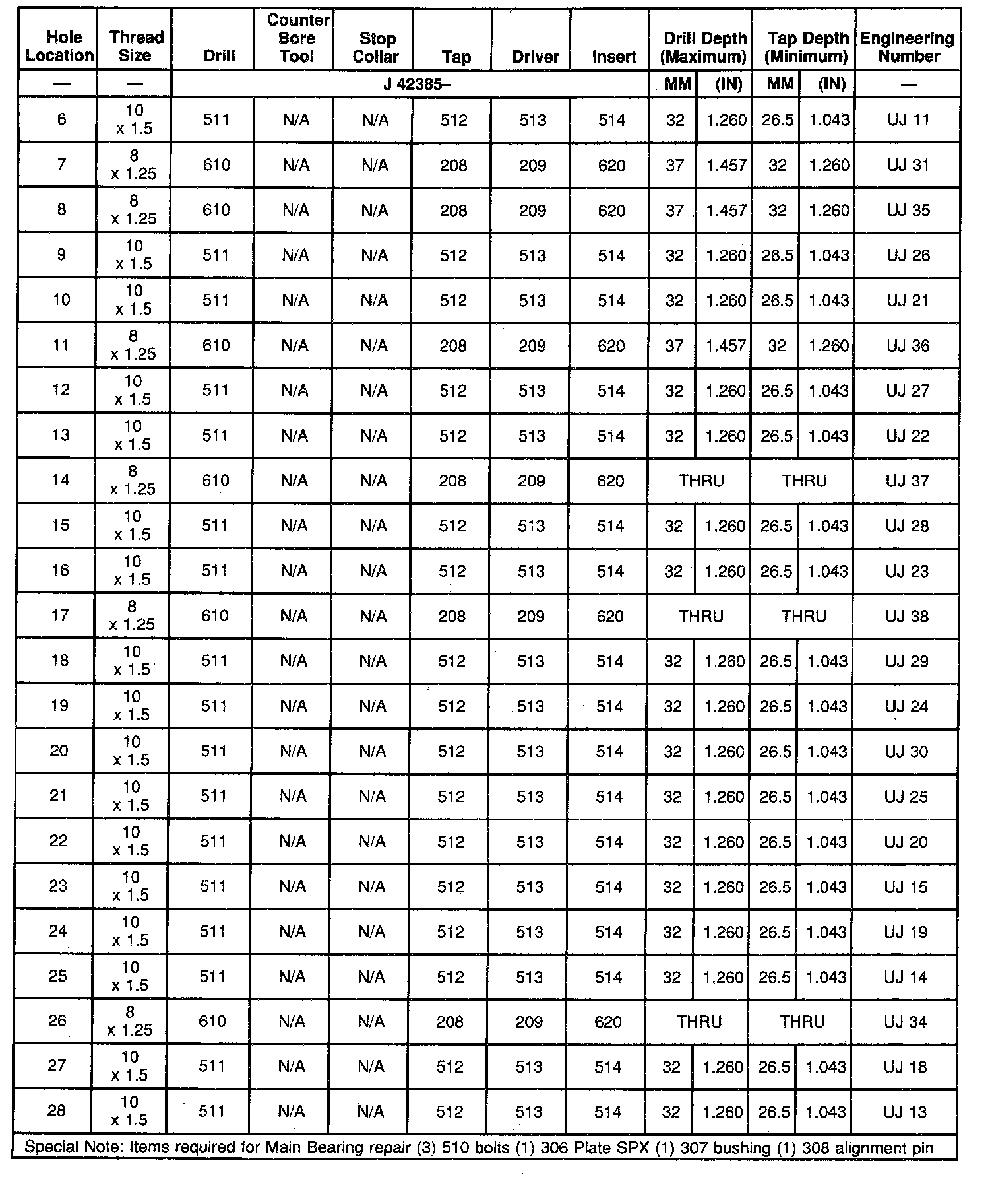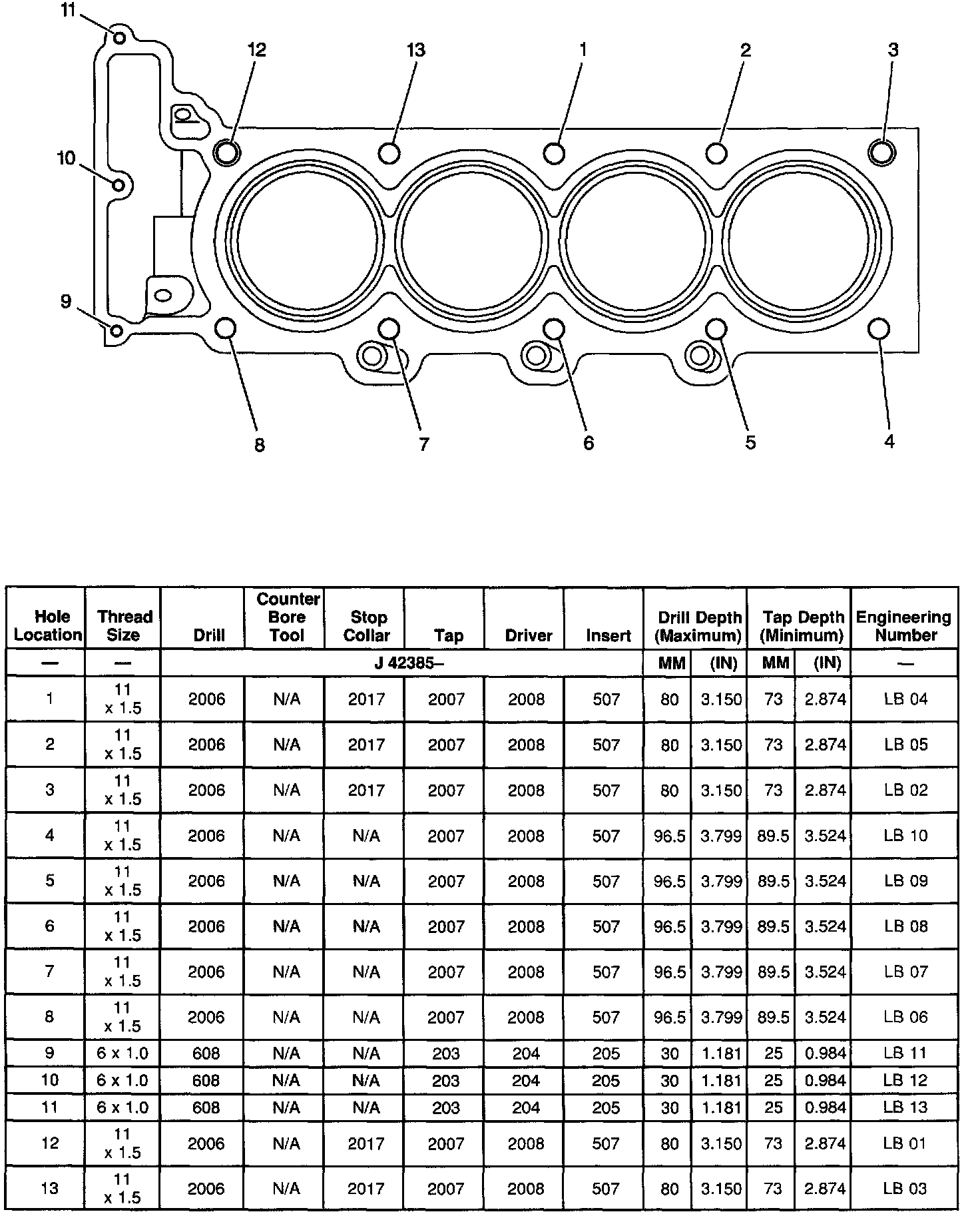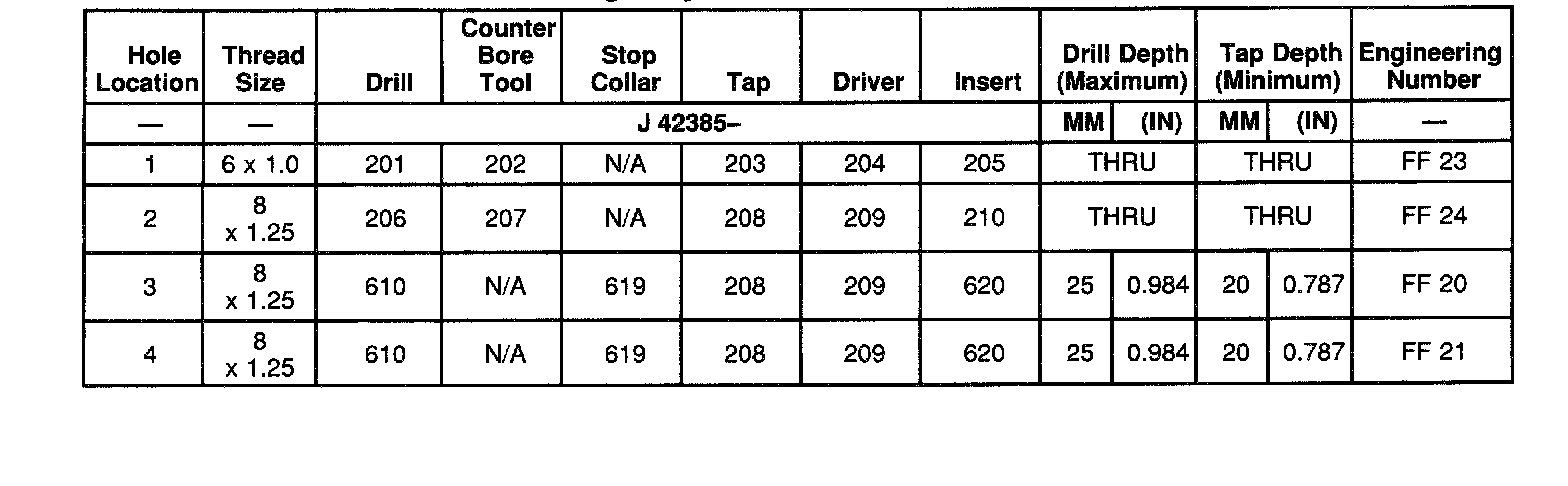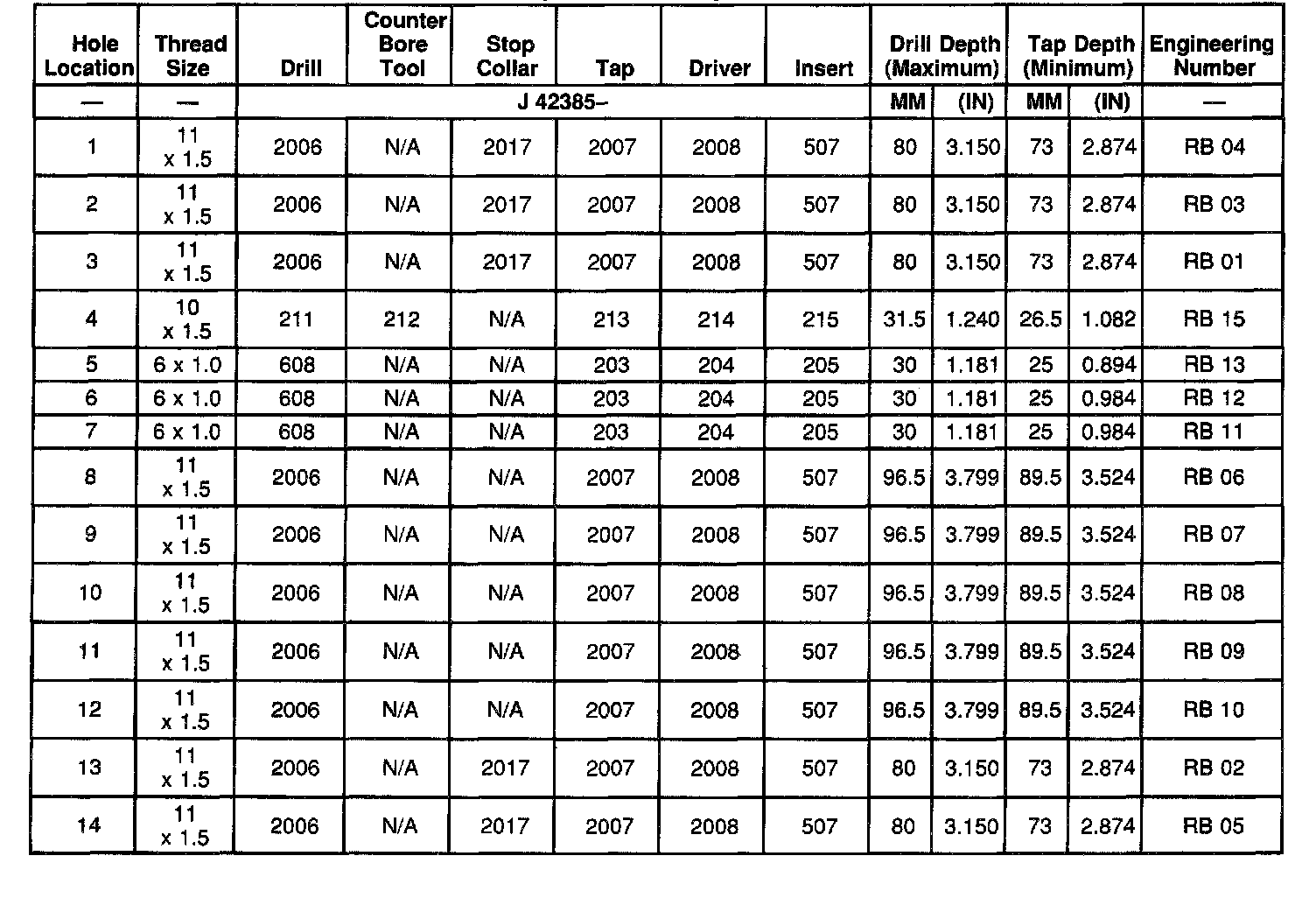 Thread Repair SpecificationsLeft Cylinder Head Cam CVR