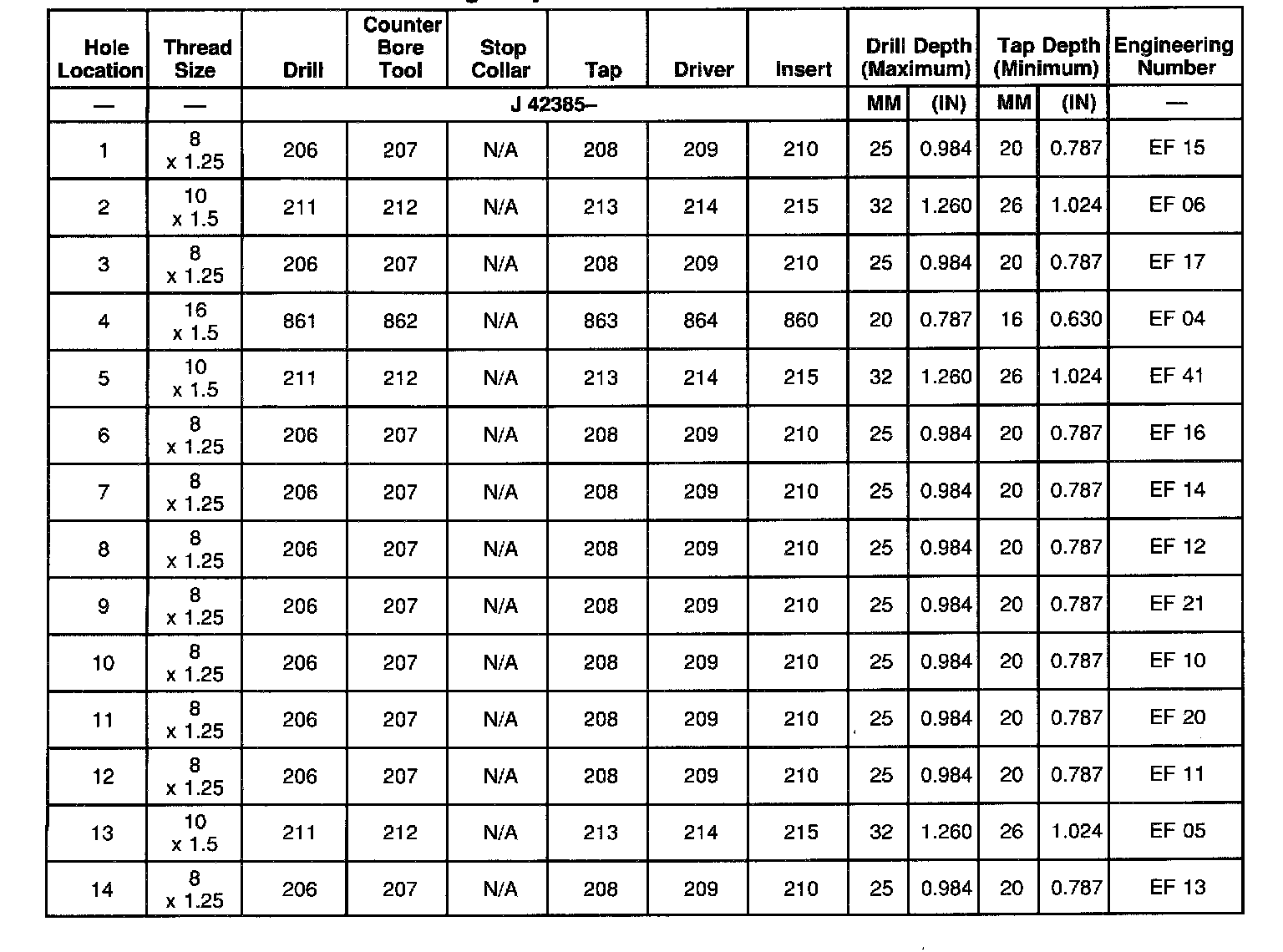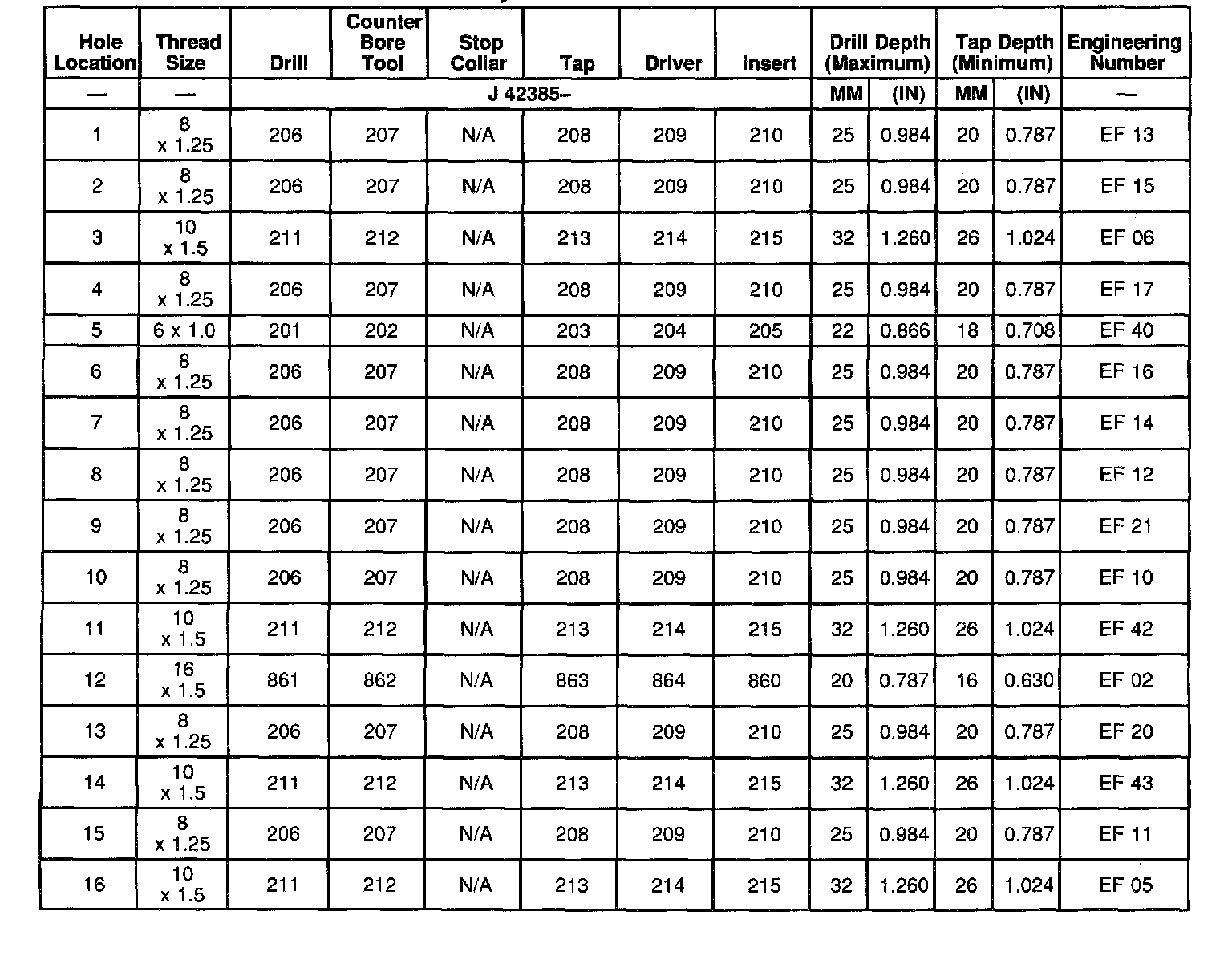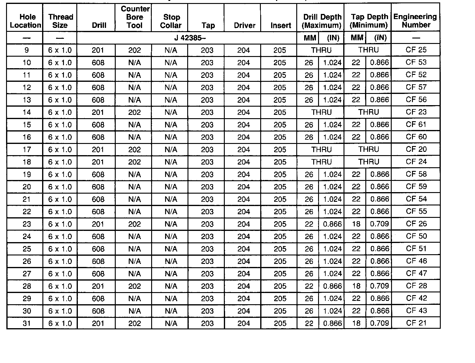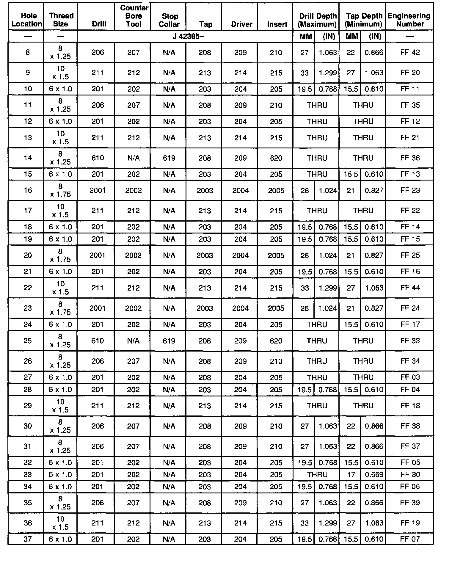 Thread Repair SpecificationsLeft Cylinder Head Cam CVR