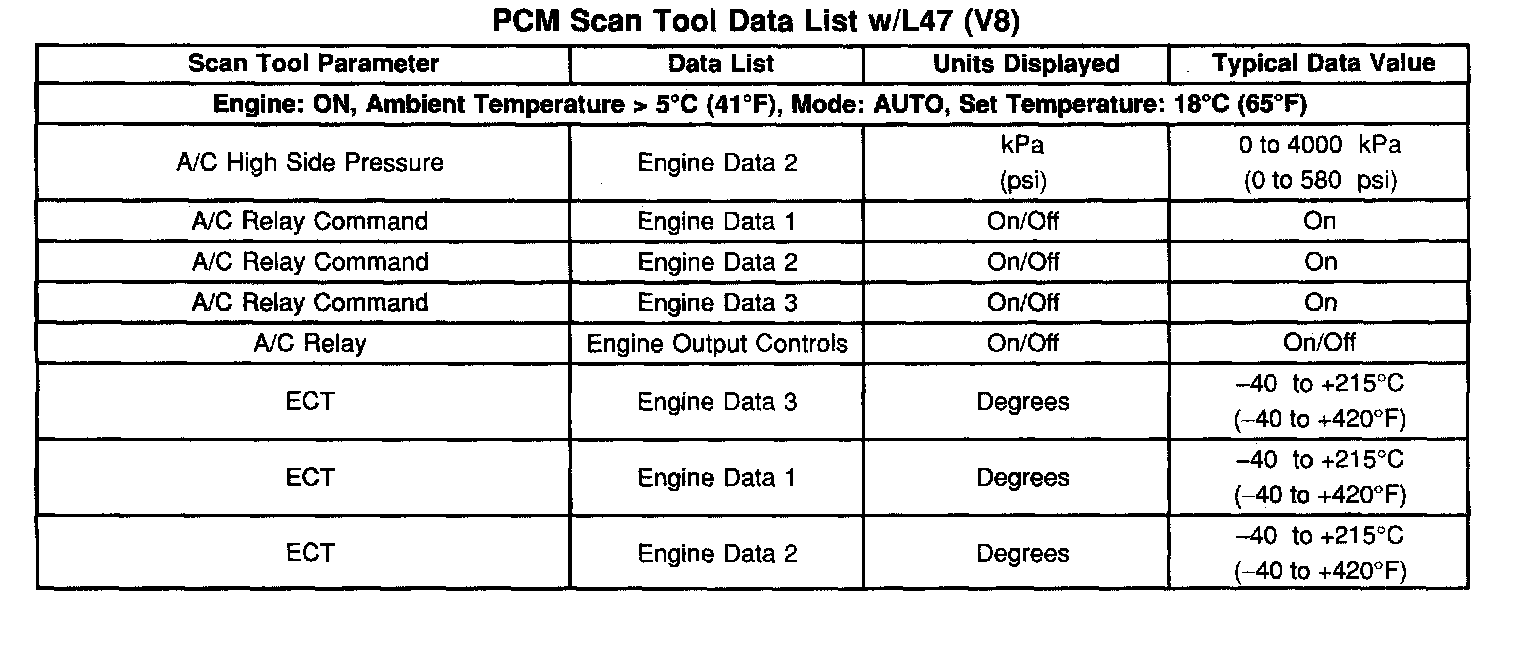 Scan Tool Data List - Powertrain Control Module (PCM)