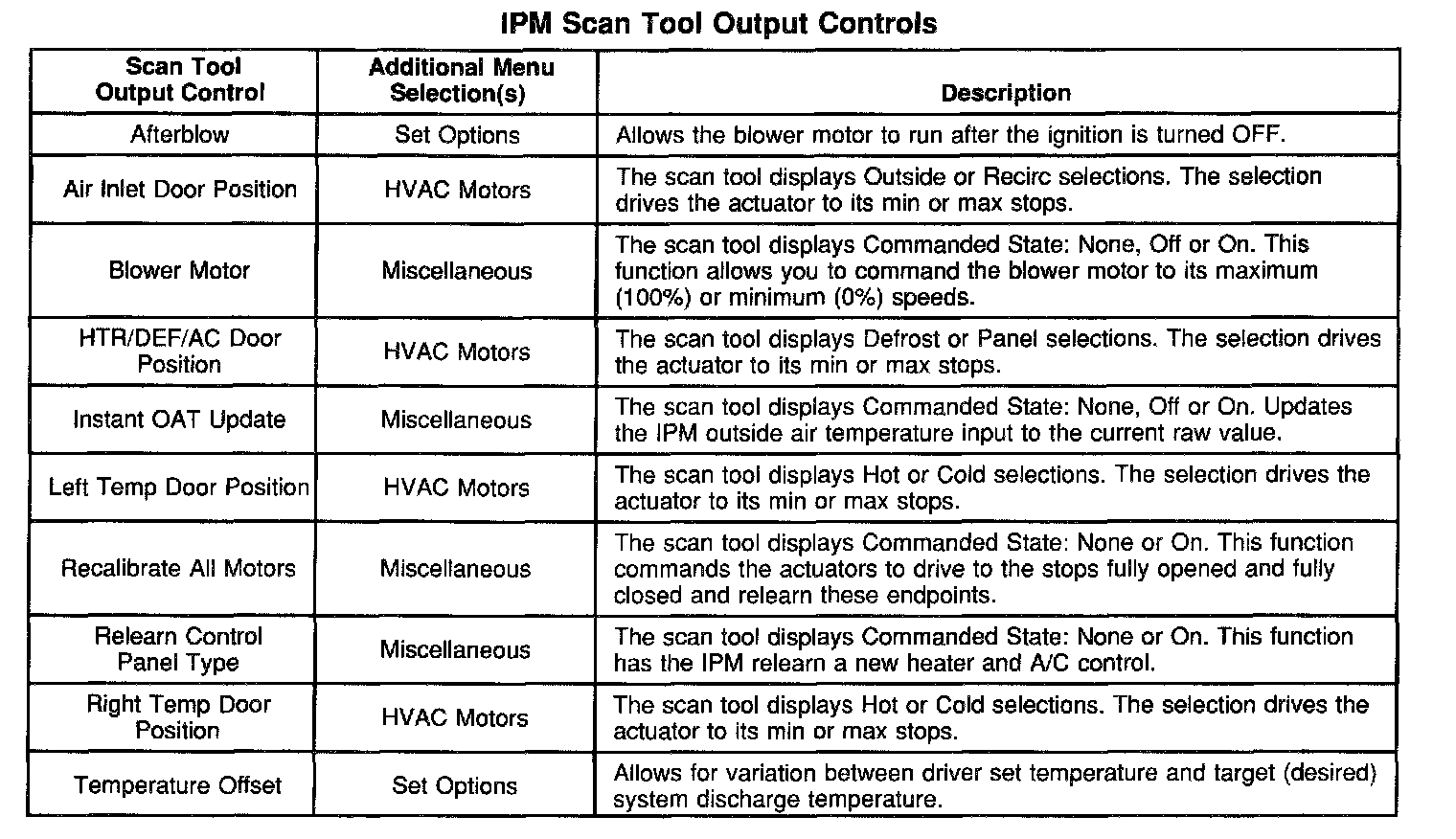 Scan Tool Output Controls - Instrument Panel Module (IPM)