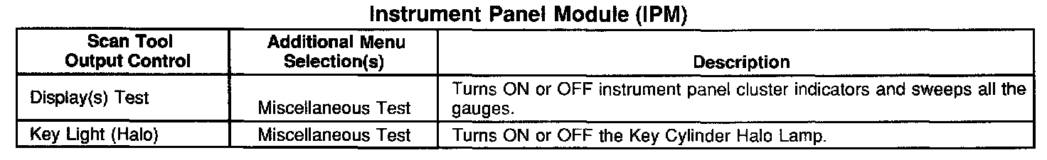 Scan Tool Output Controls - Instrument Panel Module (IPM)