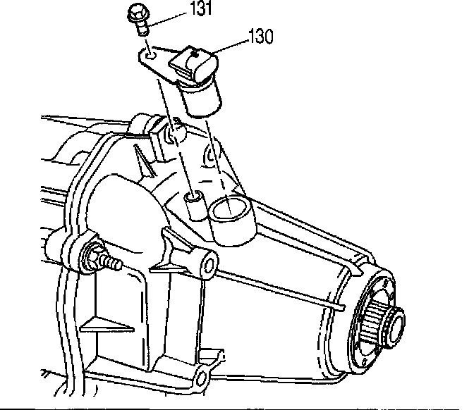 1. Install the vehicle speed sensor (130) and the retaining bolt (131). Install a new O-ring seal on sensor if necessary.