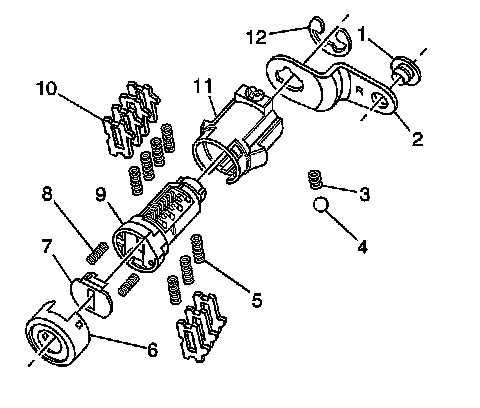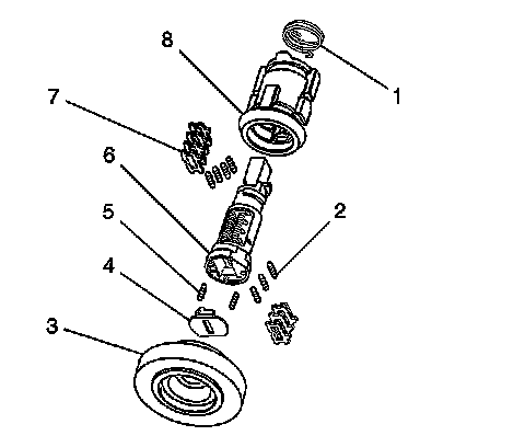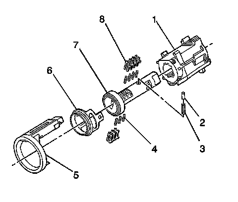 Important: The ignition lock cylinder tumblers (8) are not self retaining and must be held in place if the key is not fully inserted into the lock cylinder.