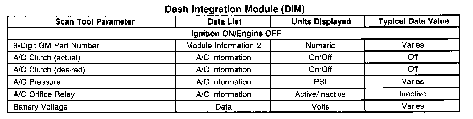 Scan Tool Data List - Dash Integration Module (DIM)