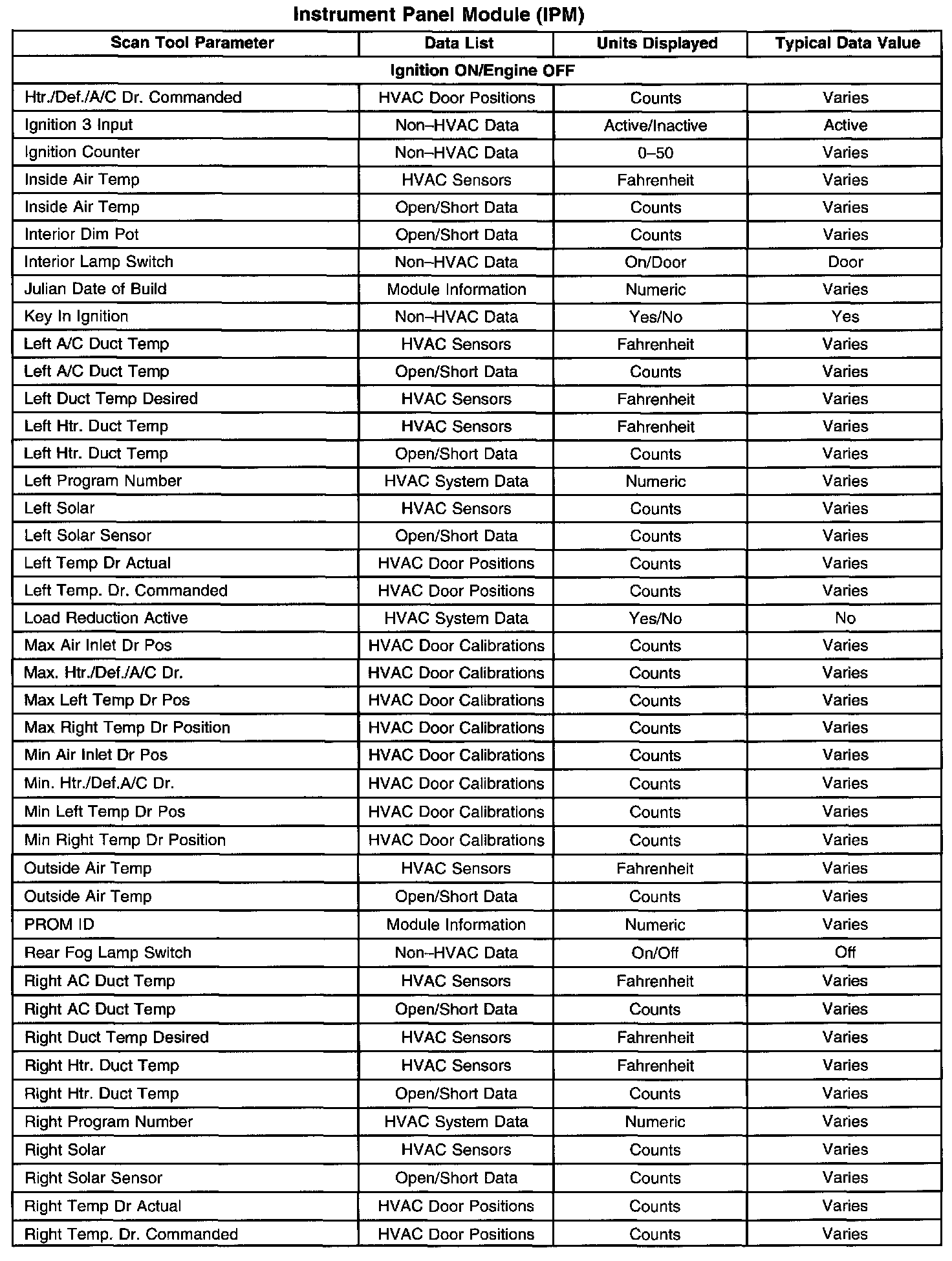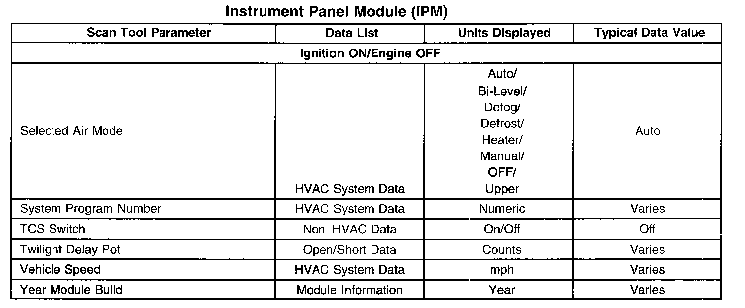 Scan Tool Data List - Instrument Panel Module (IPM)