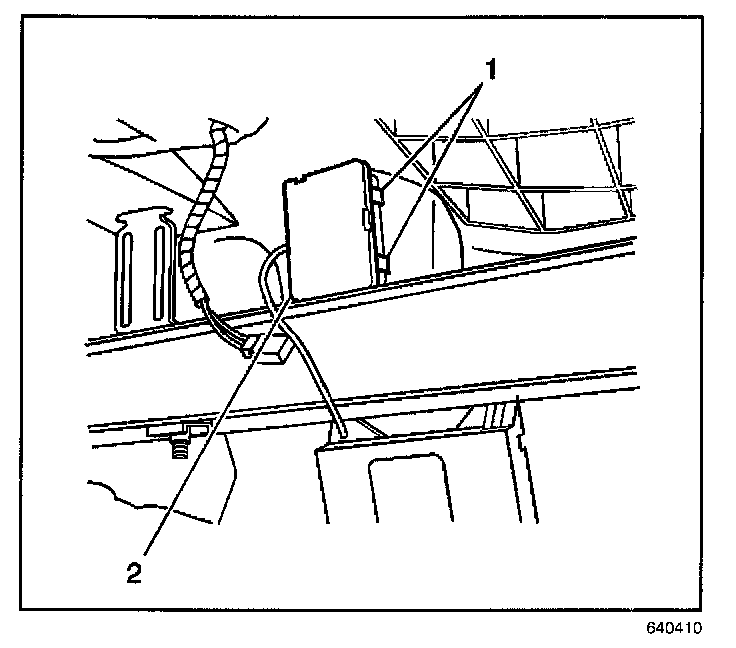 1. Snap the remote control door lock receiver module (2) into the slots in the rear compartment.