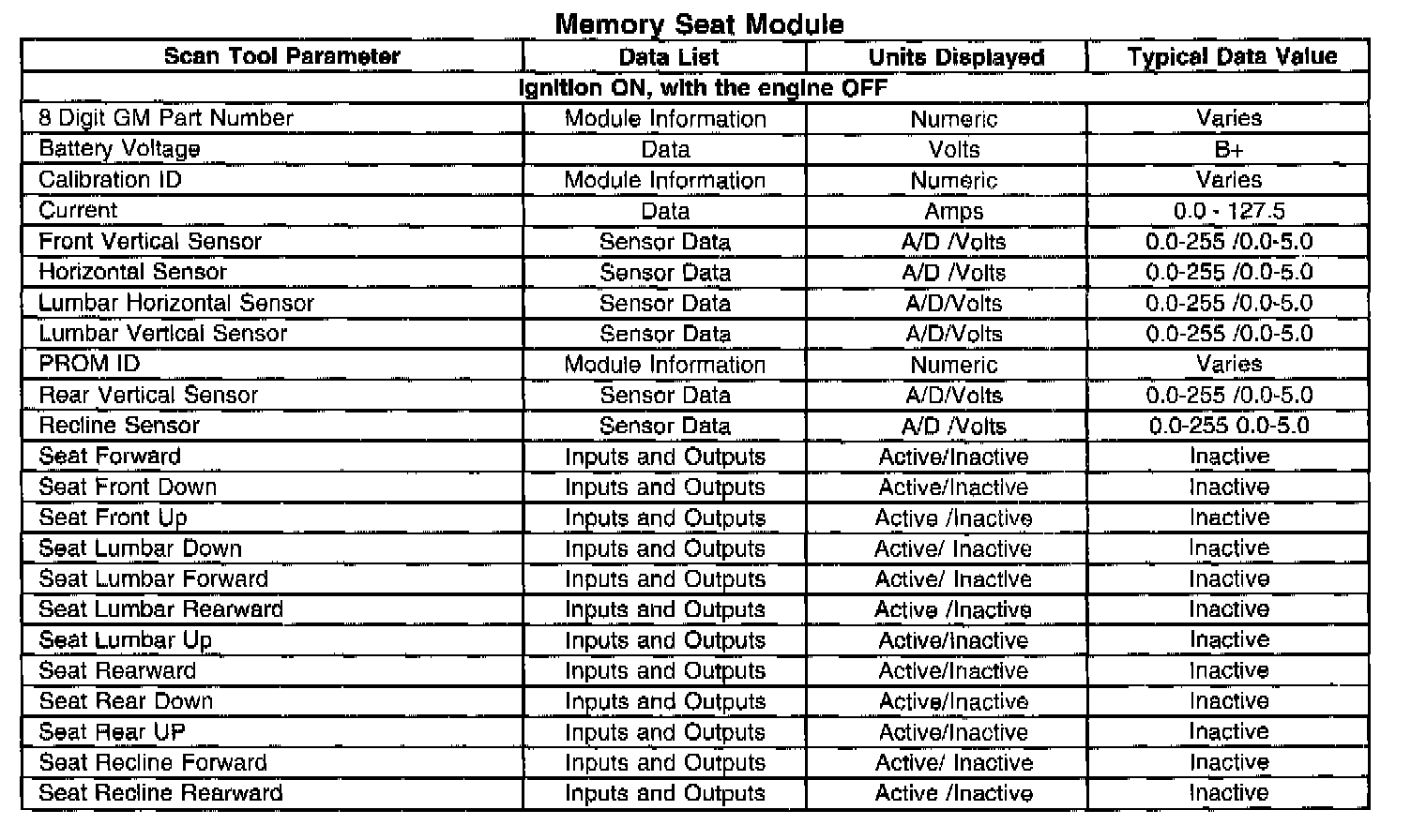 Memory Seat Module: