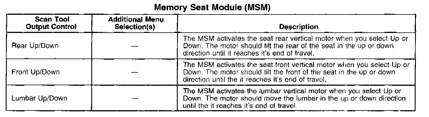 Scan Tool Output Controls - Memory Seat Module (MSM)