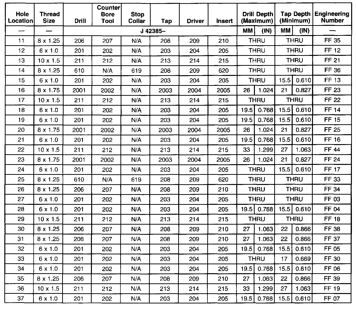 Thread Repair Specifications