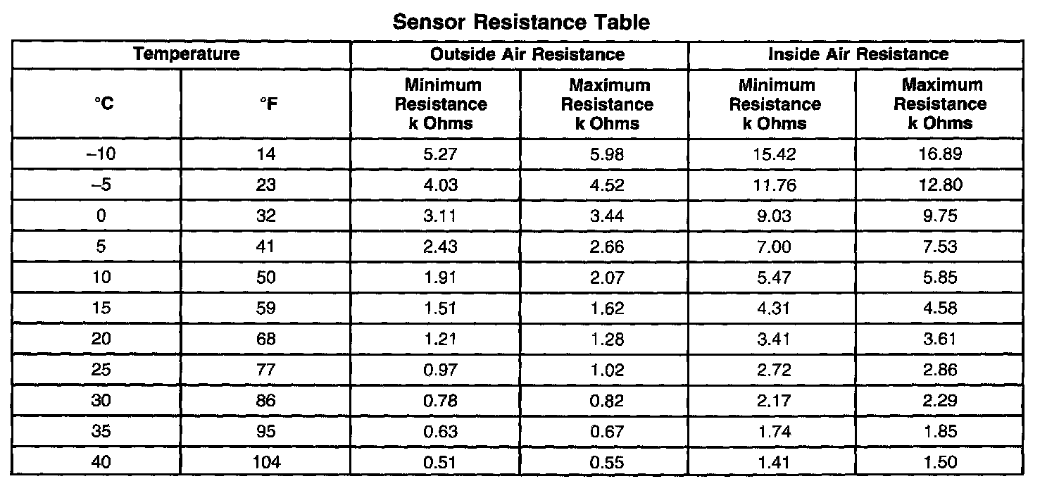 Sensor Resistance Table: