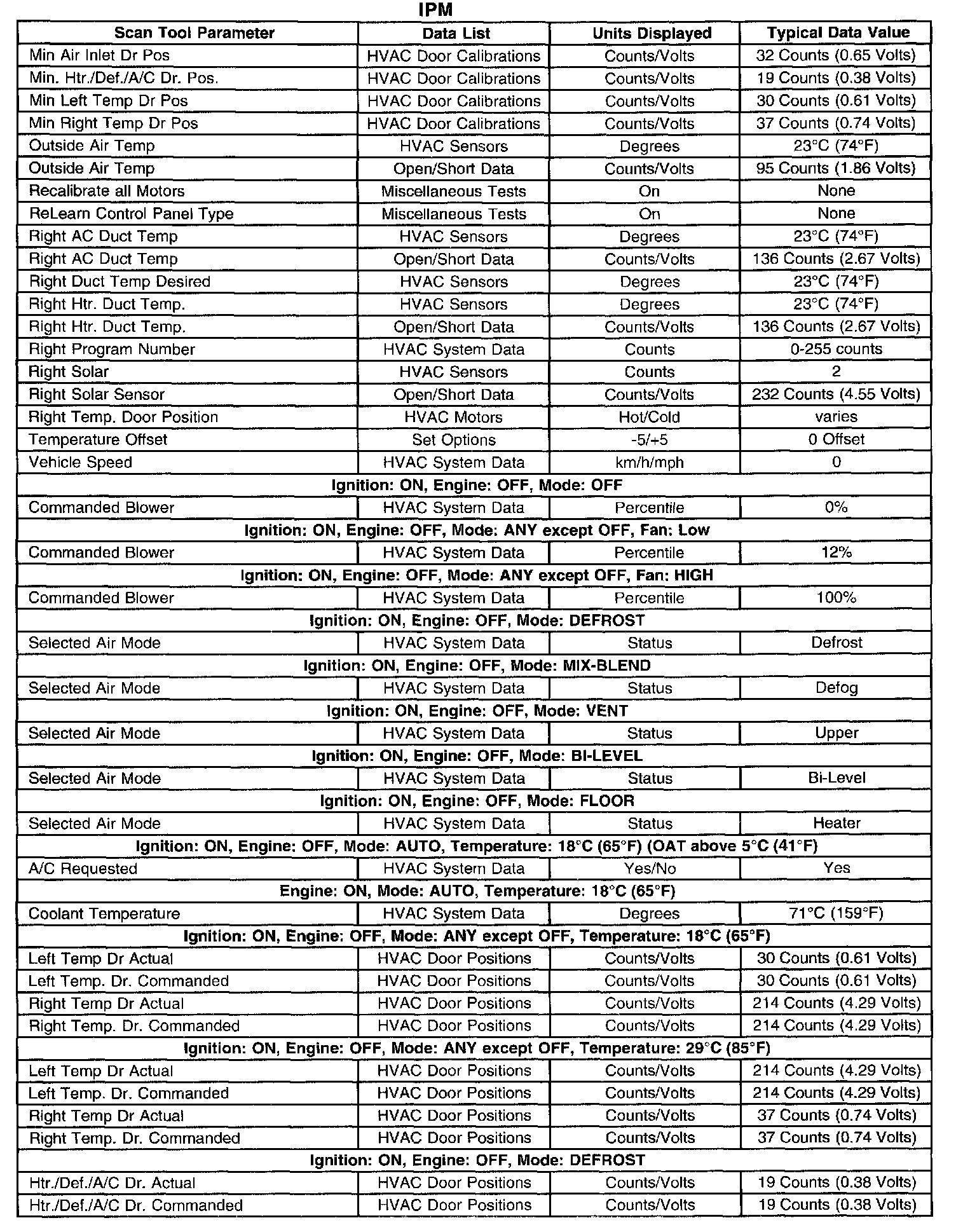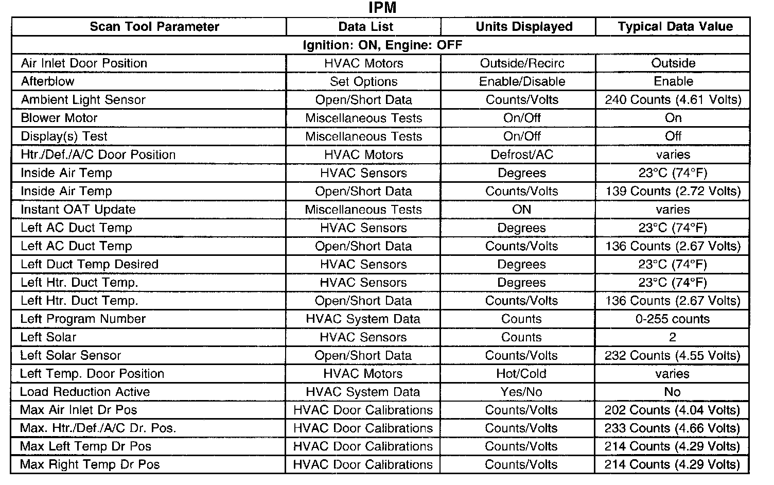 Scan Tool Data List - Instrument Panel Integration Module (IPM)