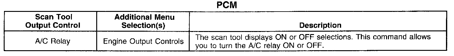 Scan Tool Output Controls - Powertrain Control Module (PCM)