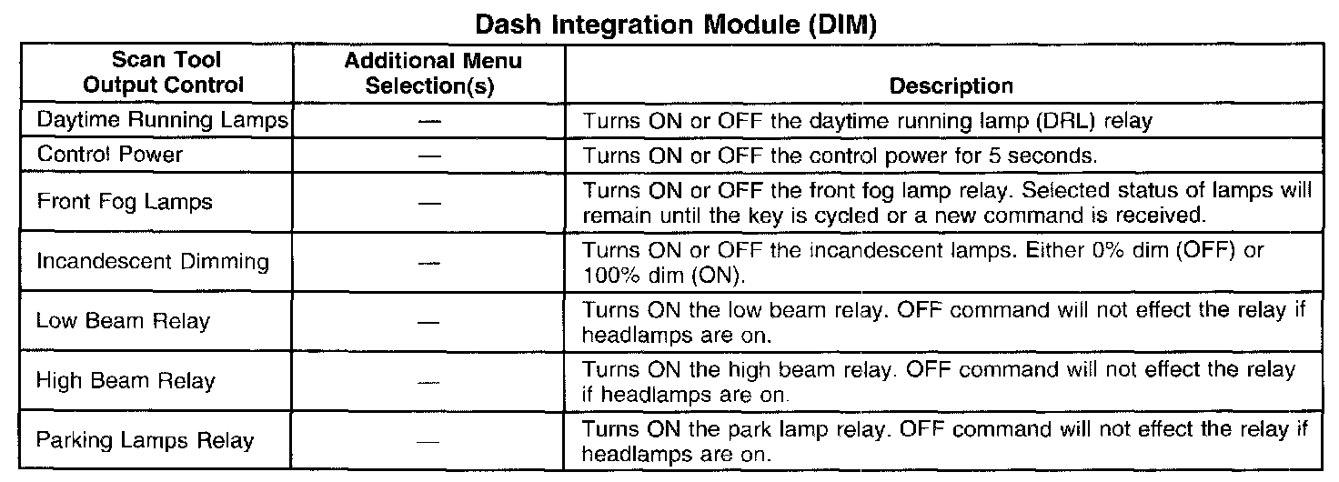 Scan Tool Output Controls - Dash Integration Module (DIM)