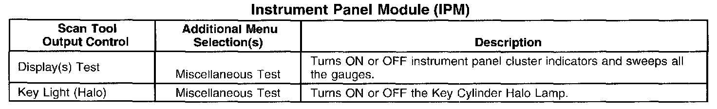 Scan Tool Output Controls - Instrument Panel Module (IPM)