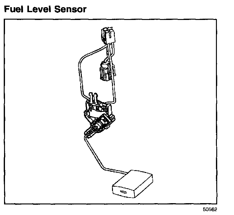 The fuel level sensor consists of a float, a wire float arm, and a ceramic resistor card. The position of the float arm indicates the fuel level. The fuel level sensor contains a variable resistor which changes resistance in correspondence with the amount of fuel in the fuel tank. The PCM sends the fuel level information via the Class II circuit to the Instrument Panel (IP) cluster. This information is used for the IP fuel gauge and the low fuel warning indicator, if applicable. The PCM also monitors the fuel level input for various diagnostics.