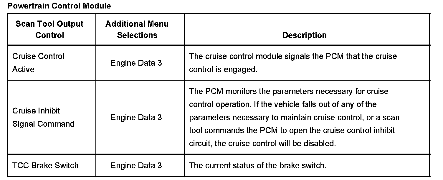 Powertrain Control Module Scan Tool Output Controls: