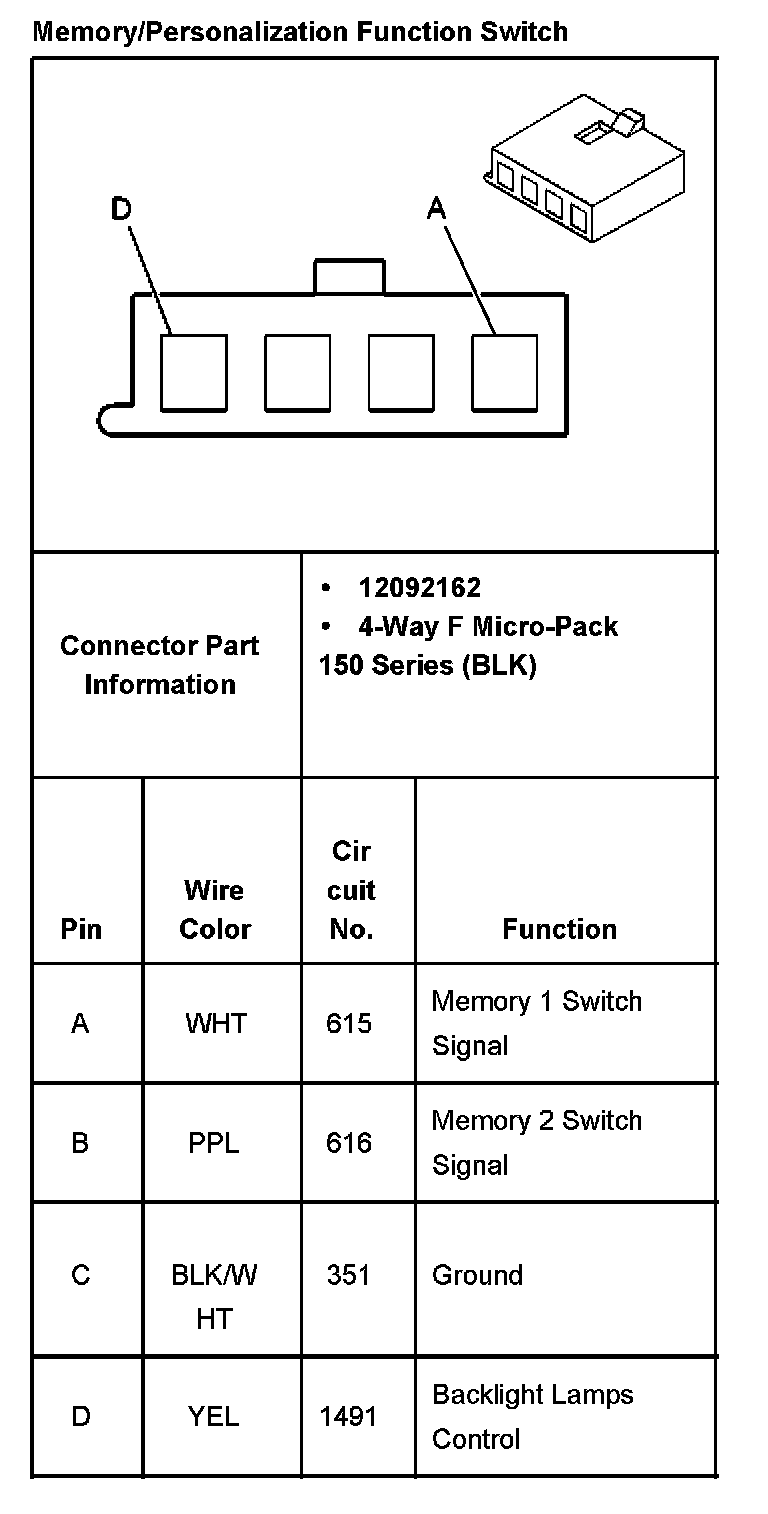 Memory/Personalization Function Switch: