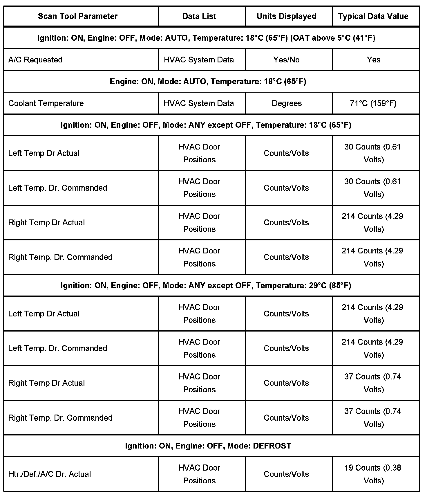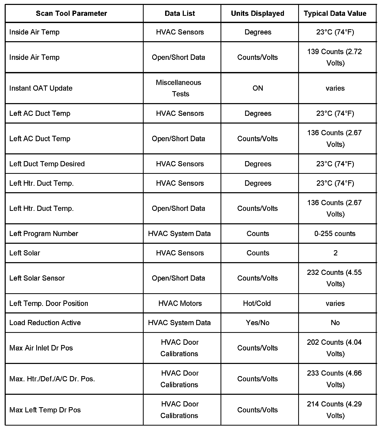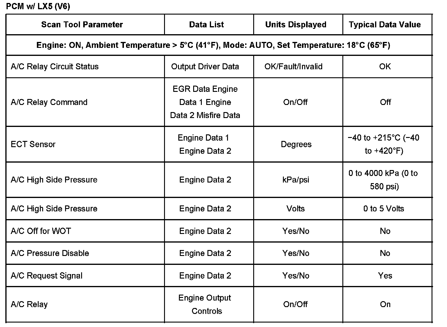 Scan Tool Normal Data Values