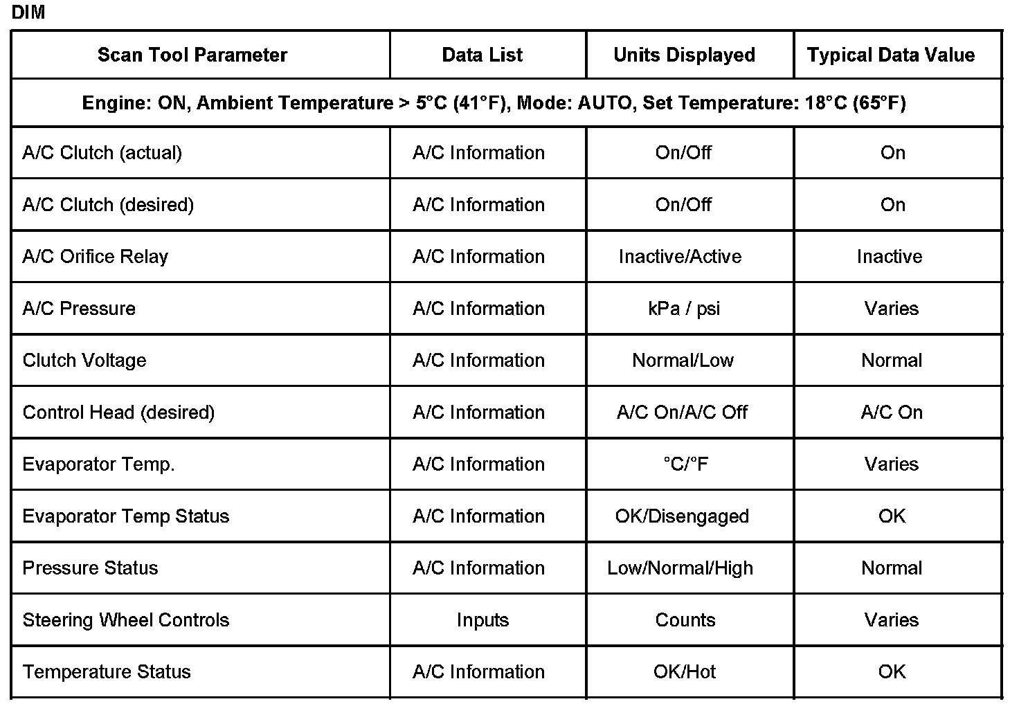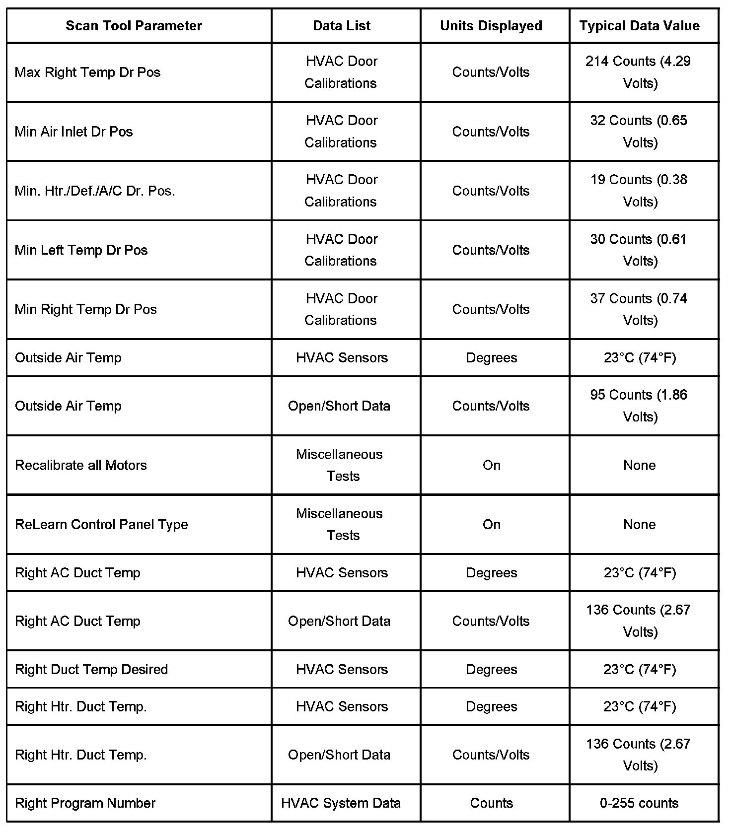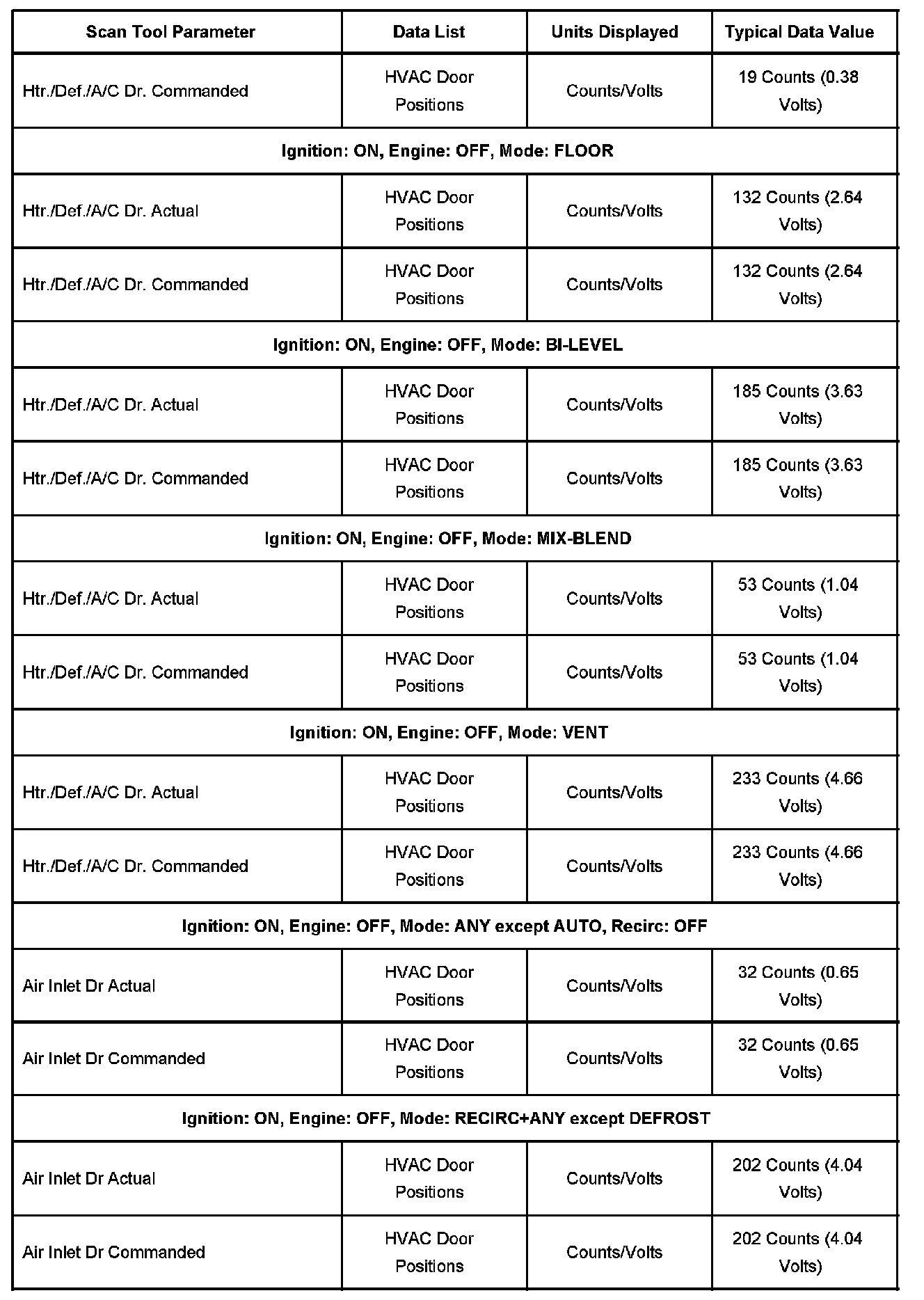 Scan Tool Normal Data Values