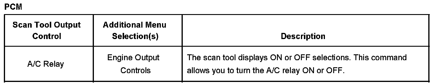 Scan Tool Output Controls - Powertrain Control Module (PCM)