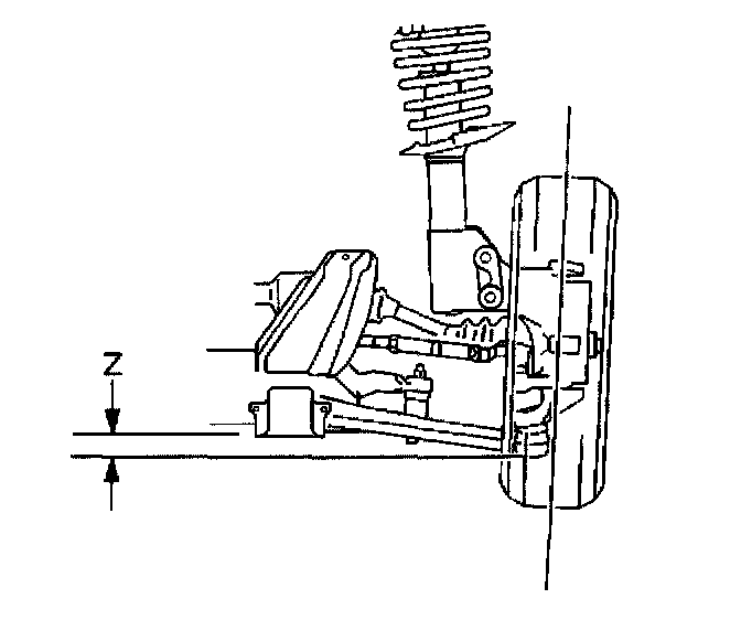 The Z height dimension measurement determines the proper ride height for the front end of the vehicle. There is no adjustment procedure. Repair may require replacement of suspension components.