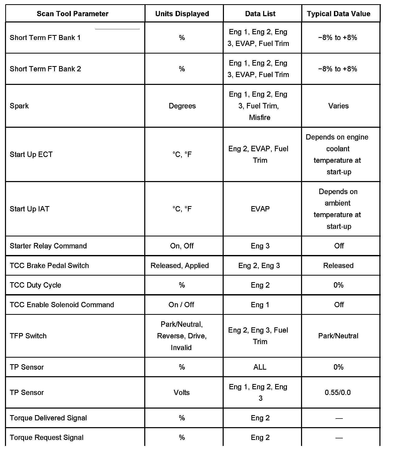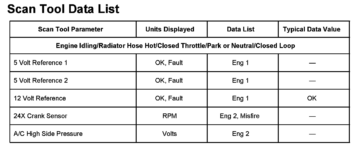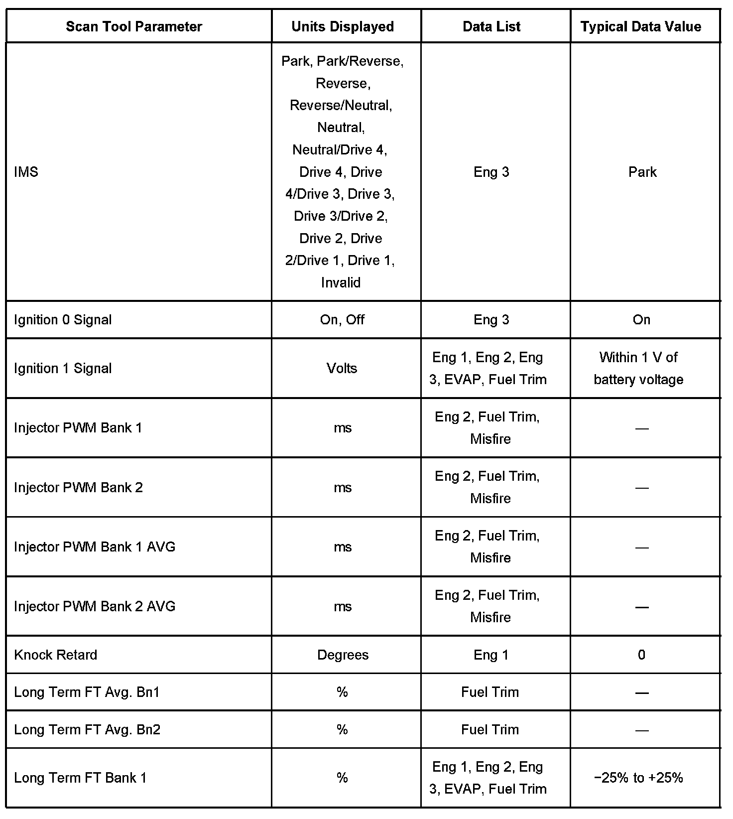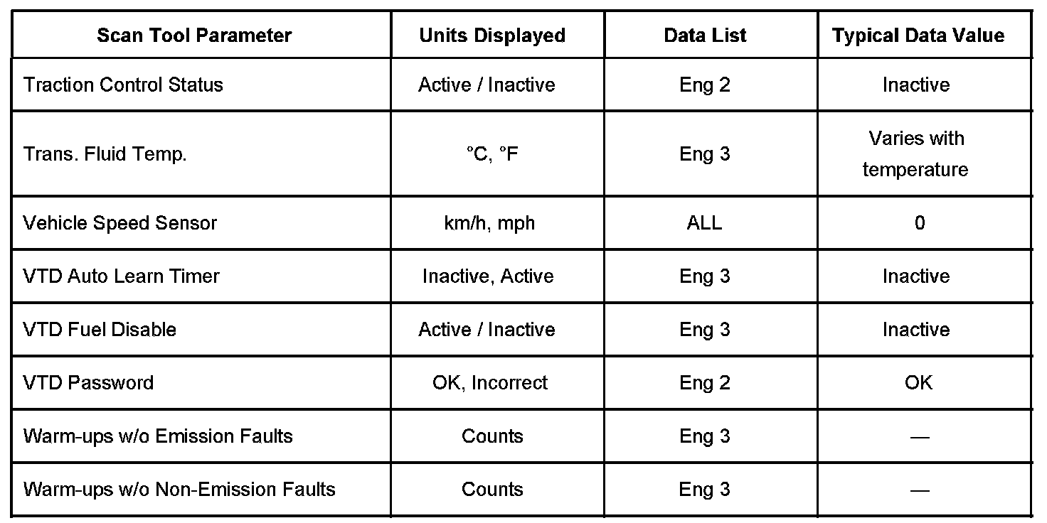 Scan Tool Data List - Powertrain System
