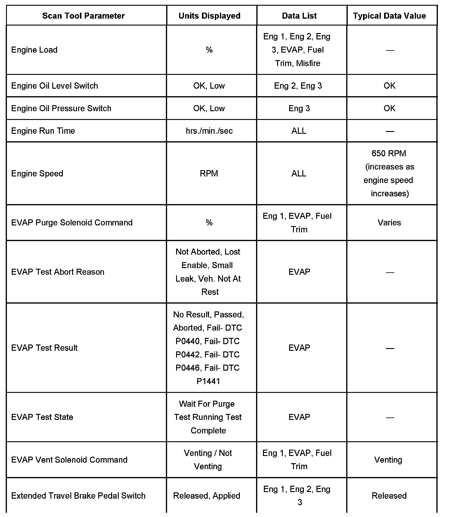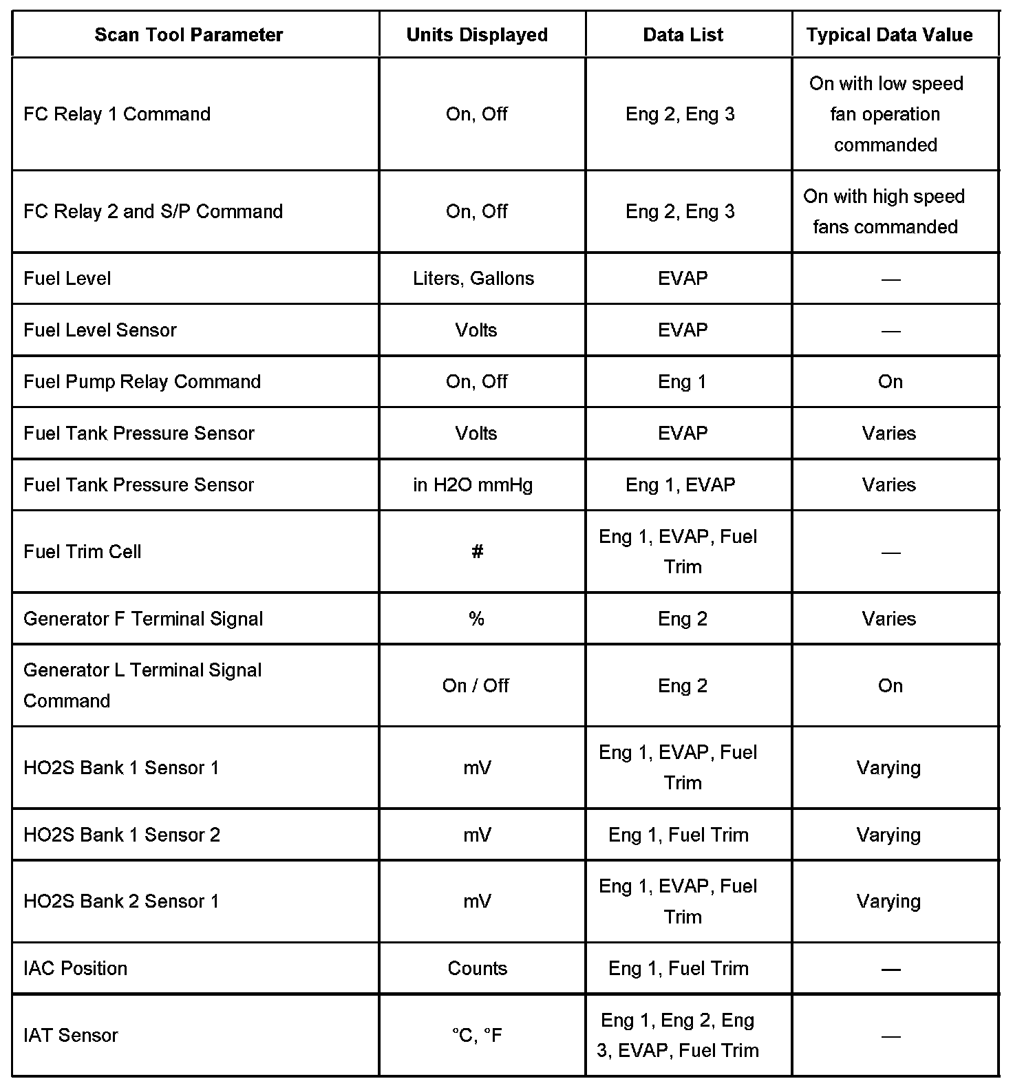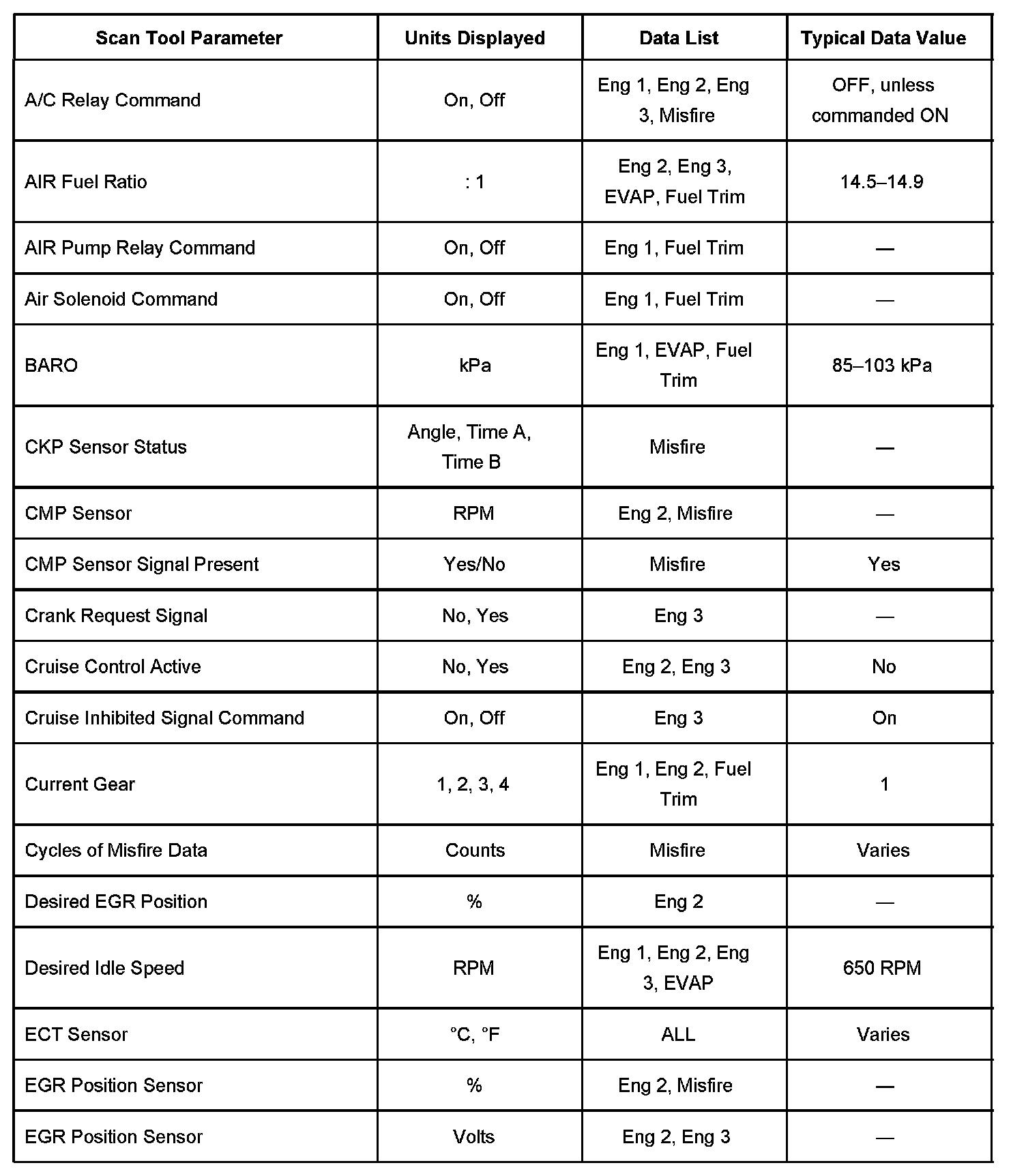 Scan Tool Data List - Powertrain System