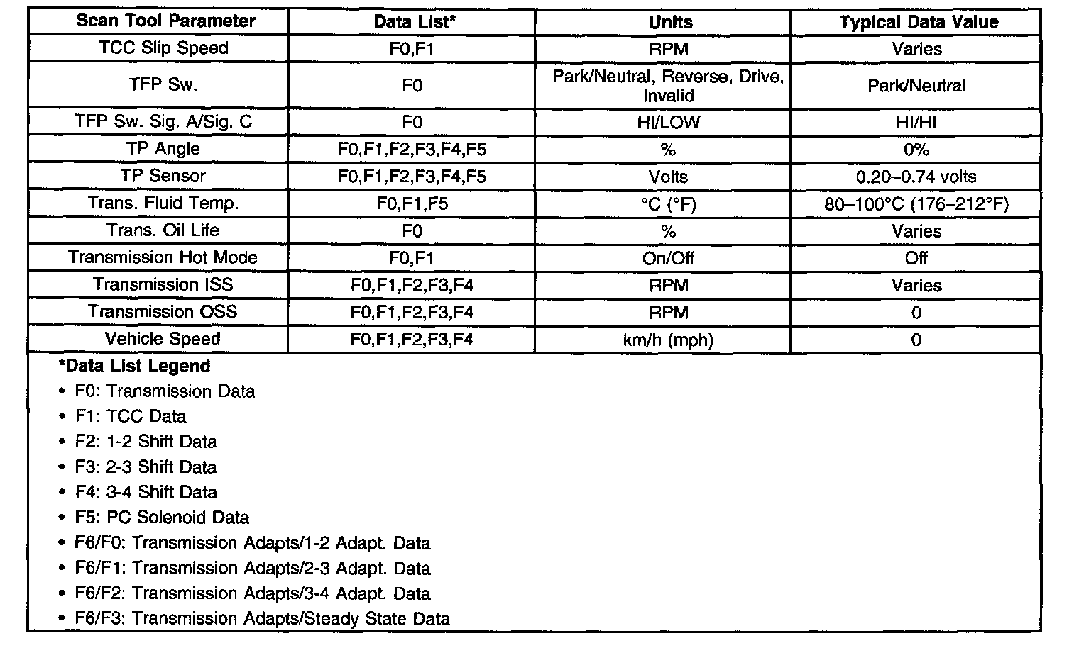 Only the parameters listed below are used in this manual for diagnosing. If a scan tool displays other parameters, the values are not recommended by General Motors for use in diagnosis.