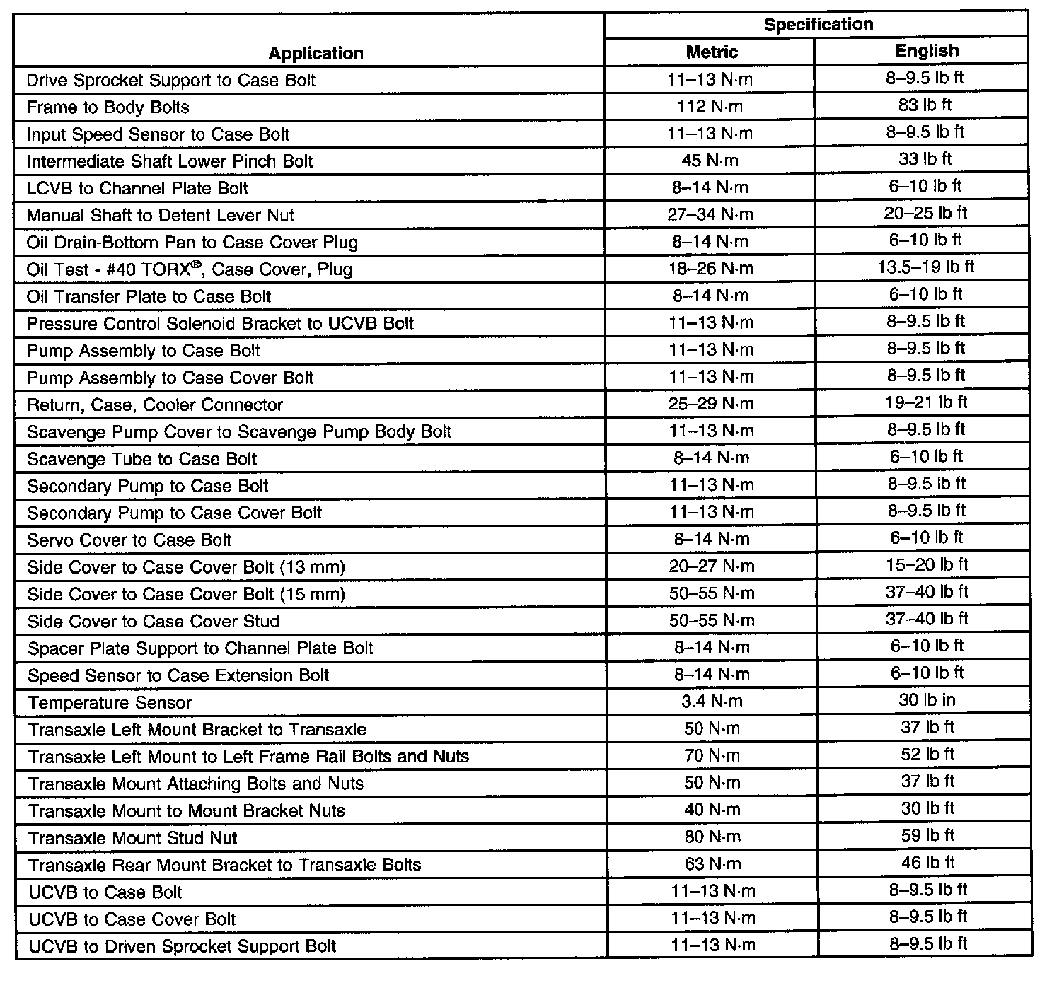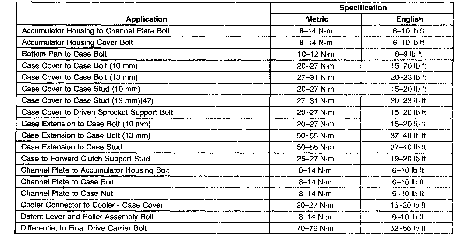 Fastener Tightening Specifications