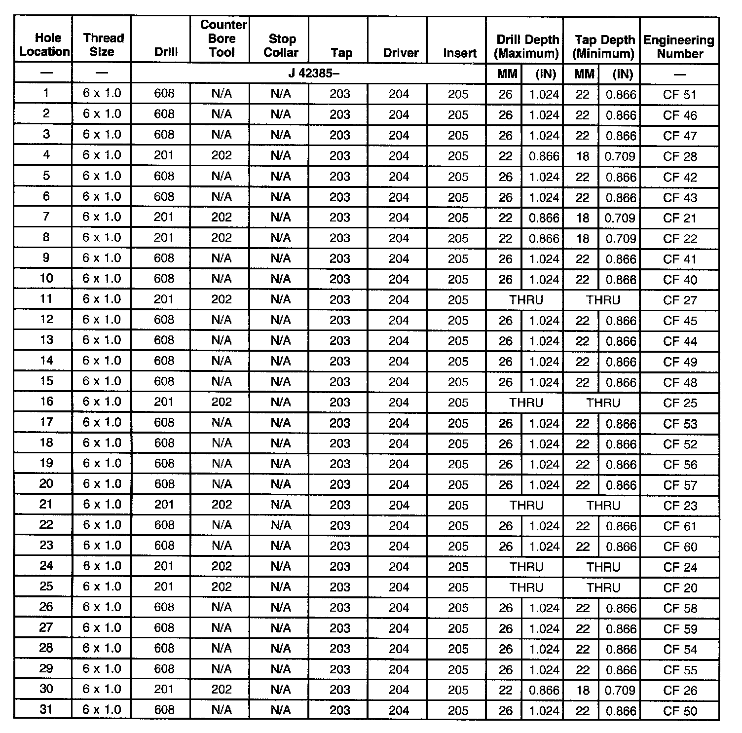Thread Repair Specifications