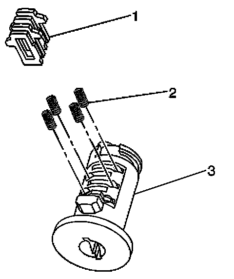 21. Install the lock assembly into the bracket (2) and secure with the clip (1).