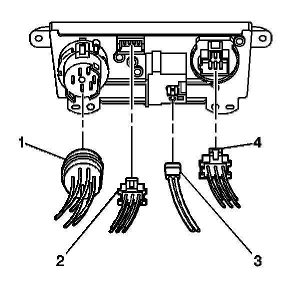 5. Disconnect the blower motor switch electrical connector (4) from the HVAC control assembly.