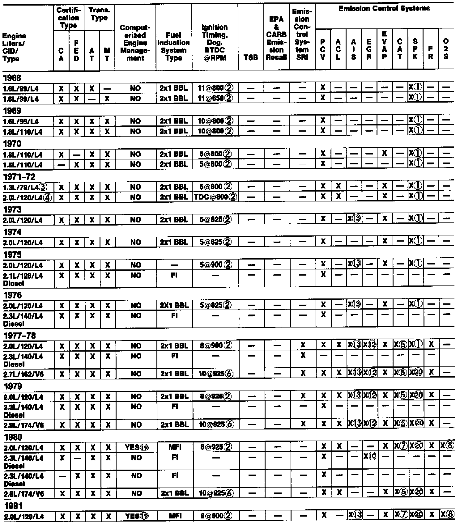 2 - Timed at No. 1 cylinder, rear of engine, w/distributor vacuum advance hose disconnected & plugged.
