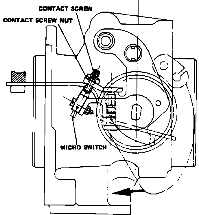 1. If micro switch has been removed, install switch onto throttle body housing, with contact arm shaft toward housing.