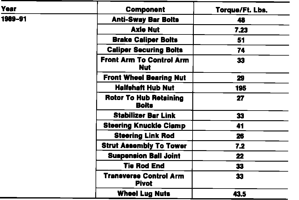 Tightening Specifications: