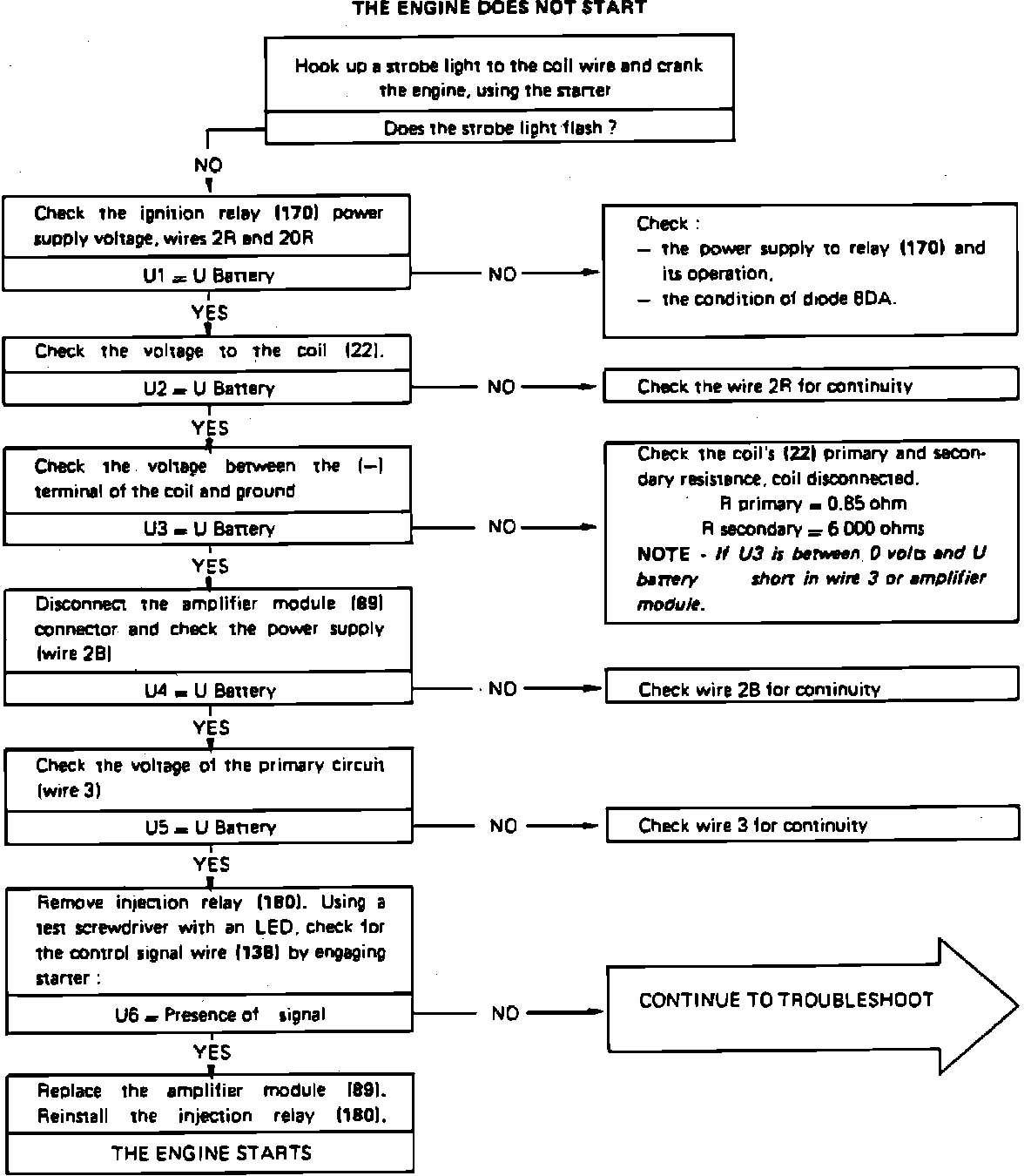 Refer to troubleshooting charts, Figs. 1a, 1b, & 1c and 2, and ELECTRICAL AND ELECTRONIC DIAGRAMS for ignition system wiring circuits.