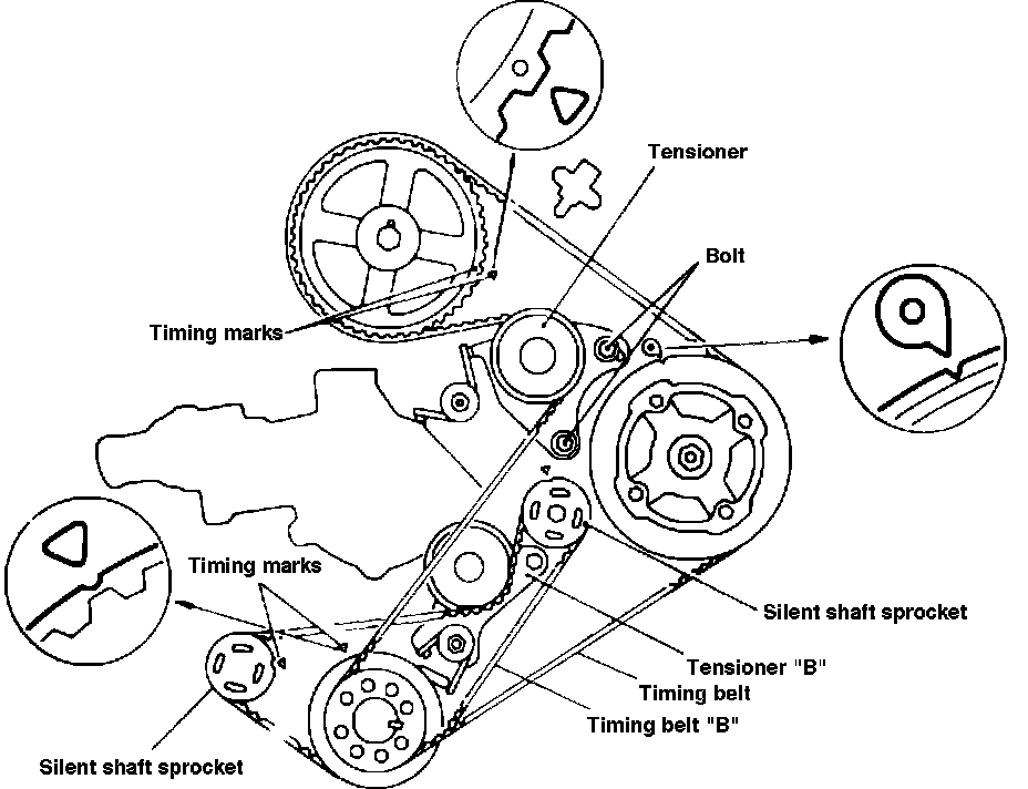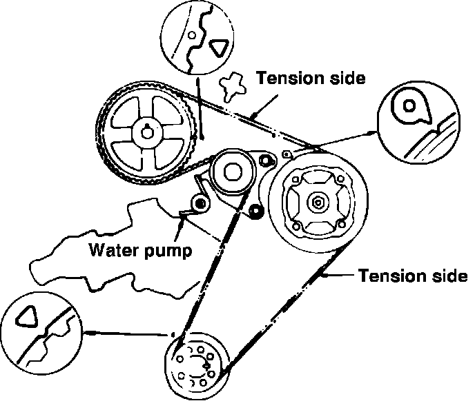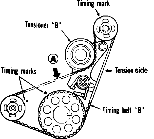 Fig. 8 Timing belt installation & sprocket timing mark alignment: