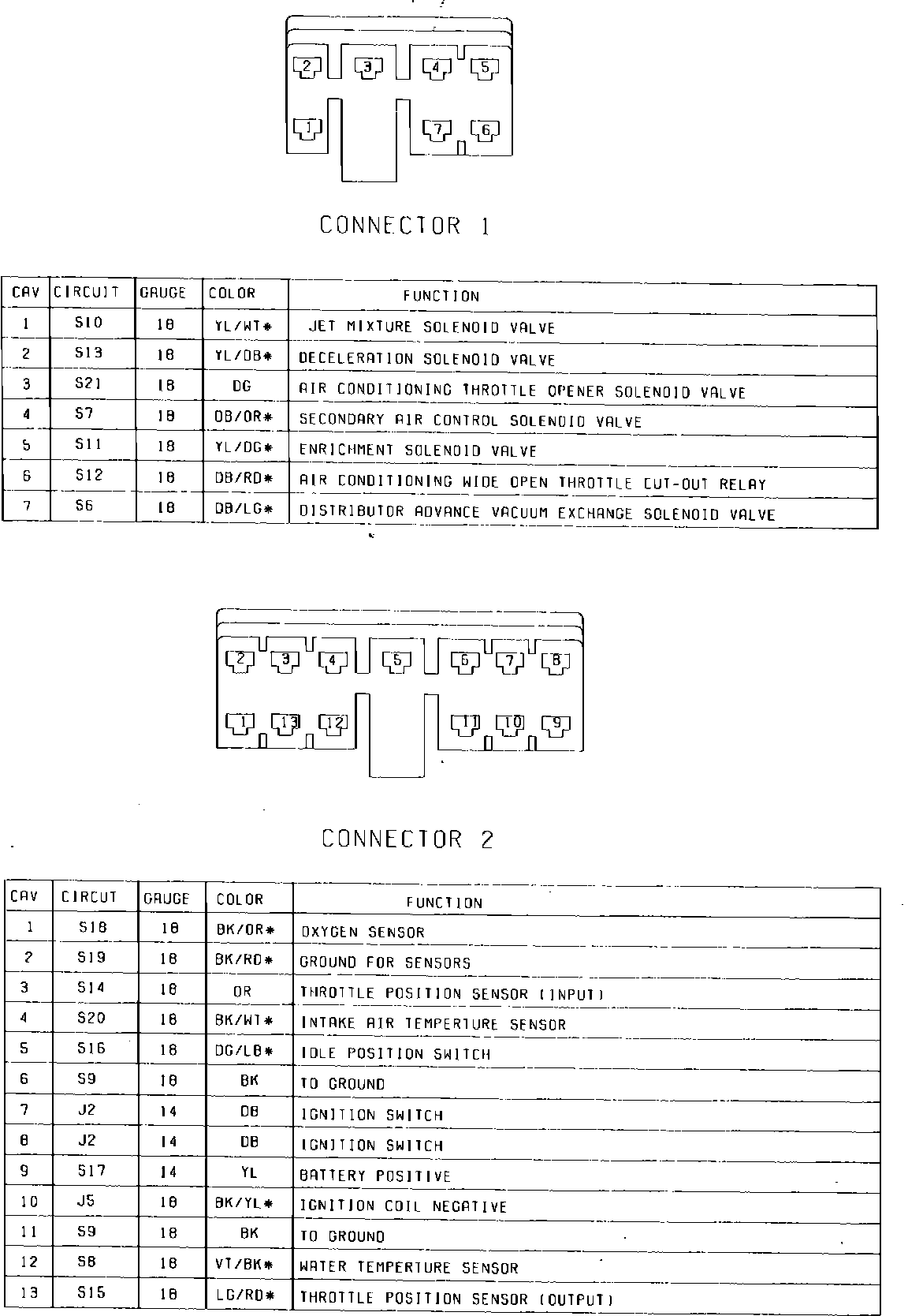 Fig. 5 Electronic Control Unit Connectors. 1985 W/2.6 Litre W/Feedback Carburetor: