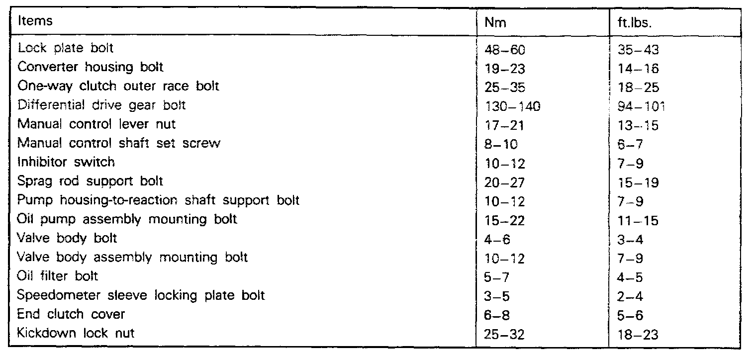 Torque Specifications: