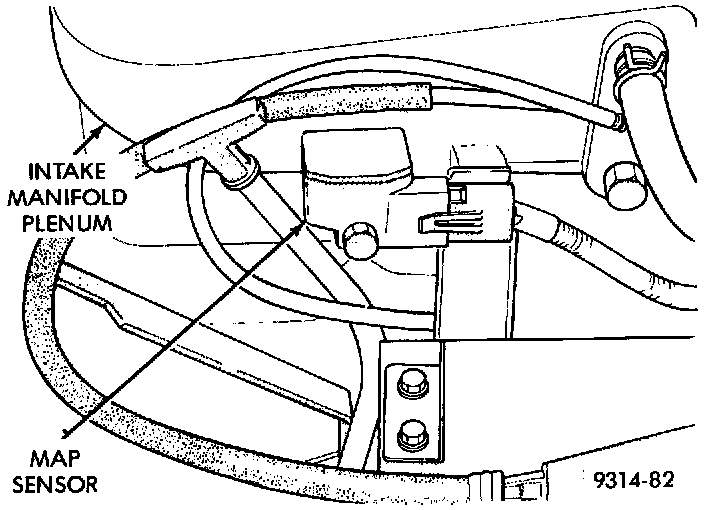 The MAP sensor mounts to the driver side of the intake manifold plenum (Fig. 16). The MAP sensor must be horizontal.