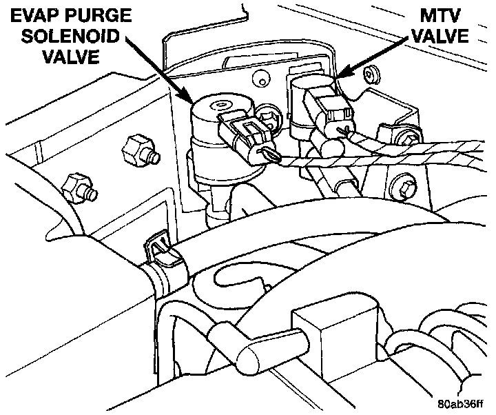 The solenoid will not operate unless it is installed correctly. The EVAP purge solenoid shares a bracket with the MTV solenoid.