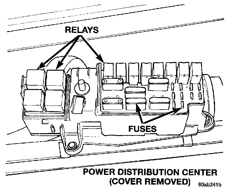 The relay is located in the Power Distribution Center (PDC). The PDC is located on the driver's side of vehicle, behind the body side panel in the engine compartment. For the location of the relay within the PDC, refer to the PDC cover for location. Check electrical terminals for corrosion and repair as necessary.