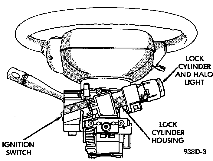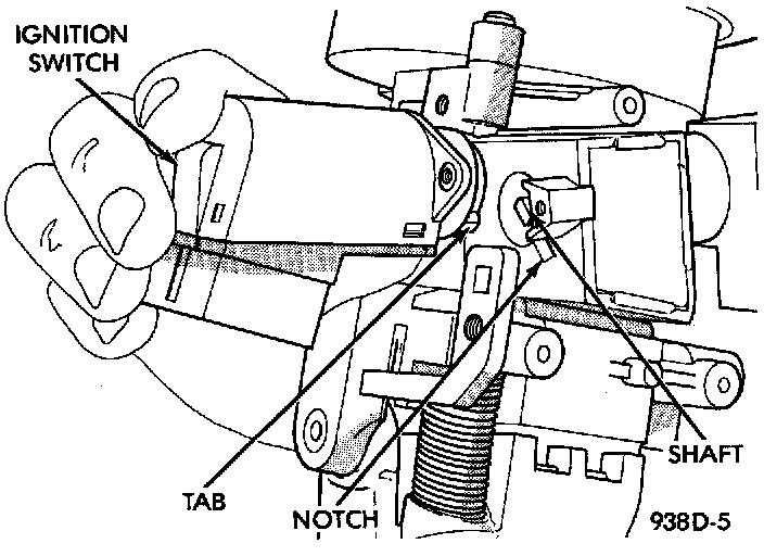 1. A tab on the ignition switch indexes to a notch in the lock cylinder housing. Also, a slot in the end of the ignition switch fits over the shaft in the end of the lock cylinder housing. Use the ignition key to rotate the lock cylinder to align the ignition switch with lock cylinder housing.