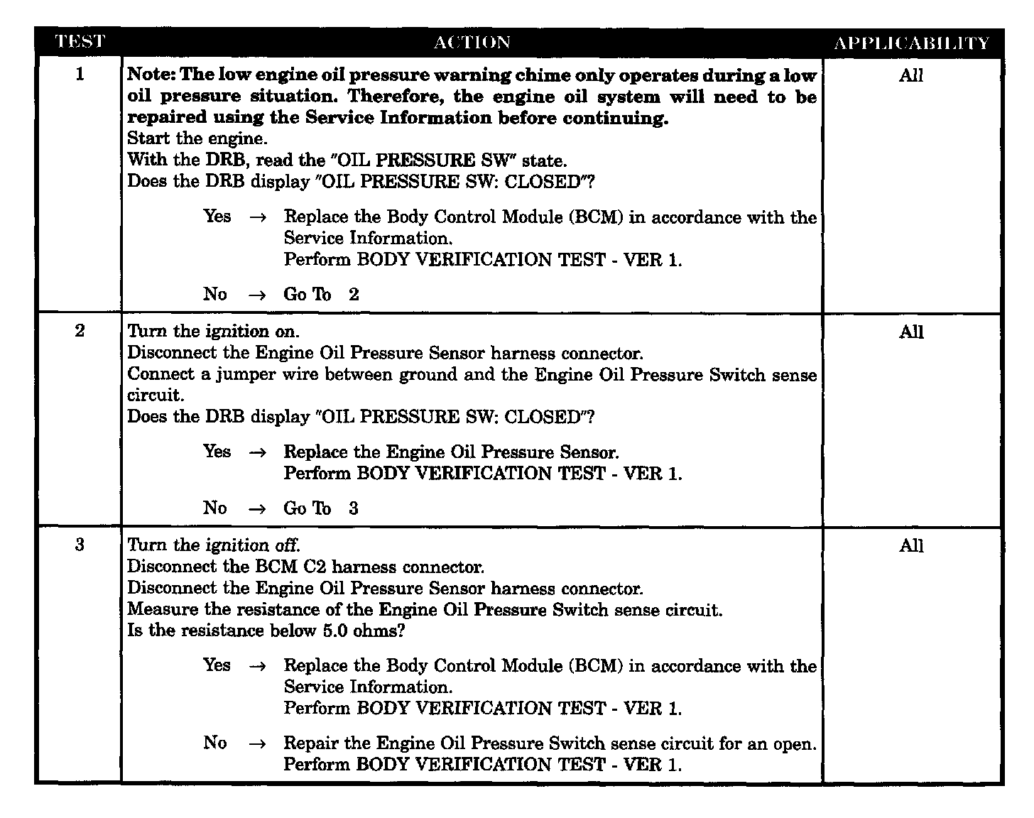 CHIME INOPERATIVE WITH LOW OIL PRESSURE